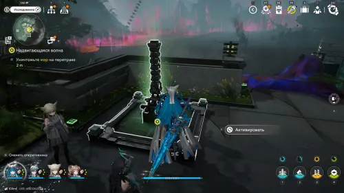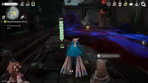 Прибыв в нужное место, поднимитесь наверх по лесенке, активируйте телепорт и взаимодействуйте с очередным узлом для активации дрона. Начните расчищать мор перед собой, двигаясь в сторону входа в здание. Прямо рядом с ним вы обнаружите ядро мора, которое необходимо тут же уничтожить.