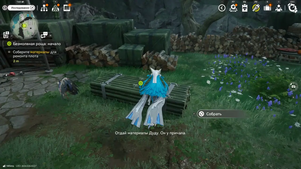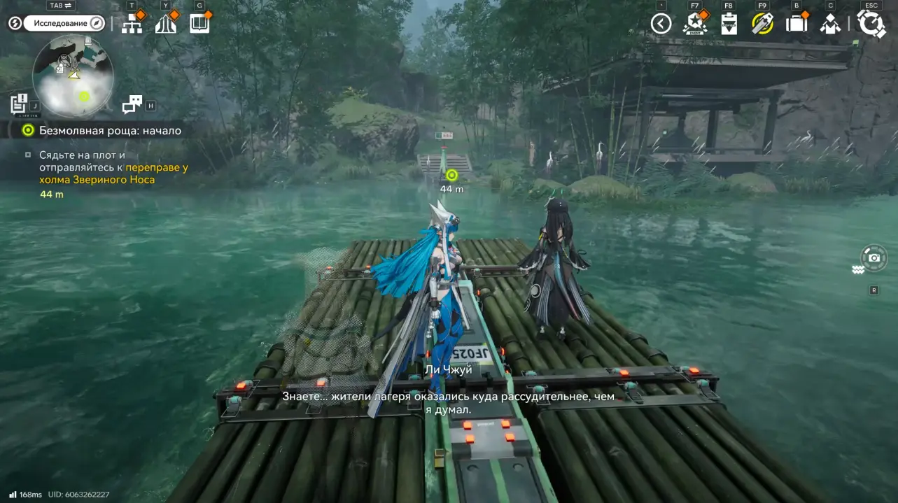 Там вы познакомитесь с Цинъу. В разговоре команда решает помочь ей починить плот, чтобы добраться до Рощи скитальцев.
