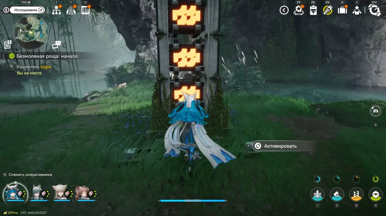 Вернитесь к Янь Лин и Ли Чжую. Подойдите к ядру и снова нажмите кнопку активации. После этого откроется путь дальше в Рощу скитальцев.