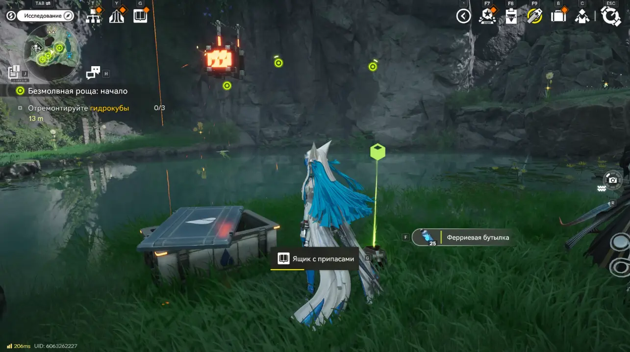 Дополнительно можно открыть ящик рядом – за это вы получите 25 Ферриевых бутылок. Это необязательная цель, но полезная (в них можно налить воду, на которой работает дрон).