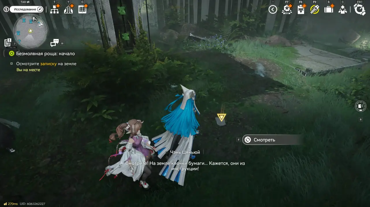 Первым делом пройдите сюжетную цепочку «Заблудившиеся на болоте». Чтобы начать квест, откройте и прочитайте сообщение от Ми Фу: она просит проверить одного из своих людей. Затем в списке заданий для отслеживания появится цель «Безмолвная роща: начало». Следуйте за маркером, он укажет точку выше Равнины небесного царя. После активации цели можно приступать к прохождению.