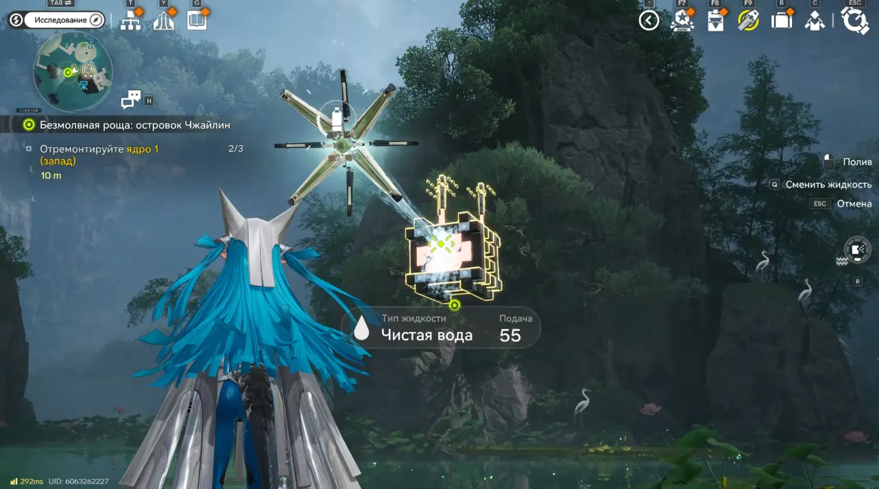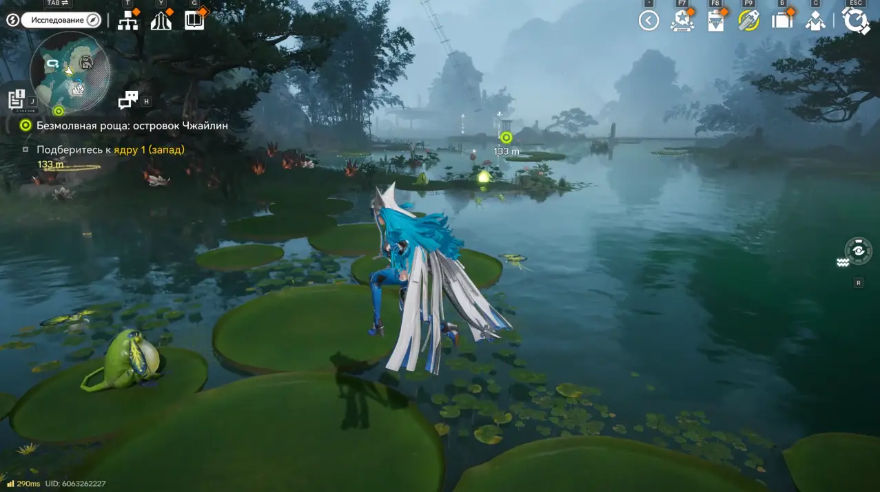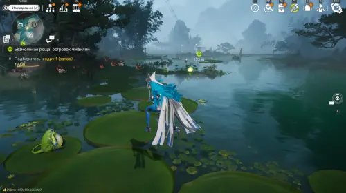 Следующая задача – приблизиться к Ядру 1. Самый удобный способ – открыть карту и отправиться к ближайшему ТП. Но если оно у вас еще не открыто, то придется добираться по водоему на листьях лотоса.
