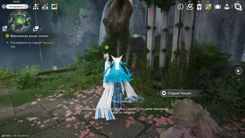 Миссия «Безмолвная роща: эпилог» открывается после завершения задания «Безмолвная роща: южный холм». В предыдущем этапе вы находили пропавшую Тяньши Юй Сюань и восстанавливали Ядро 3 (юг). После этого становится доступен эпилог всей сюжетной линии.