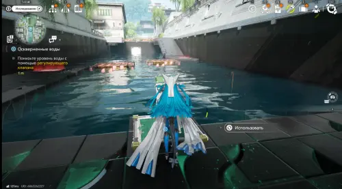 После этого рядом появится регулирующий клапан. Активируйте его, чтобы вернуть уровень воды в нормальное состояние. Когда вода поднимется обратно, задание «Оскверненные воды» будет завершено.