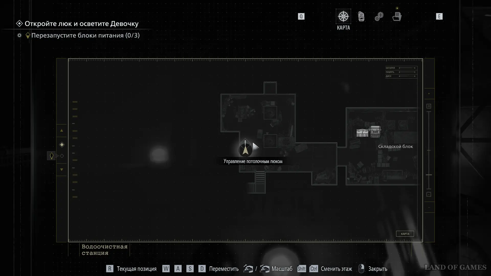 Покиньте Складской блок и активируйте Управление потолочным люком. Однако энергии не хватит на то, чтобы открыть его полностью.