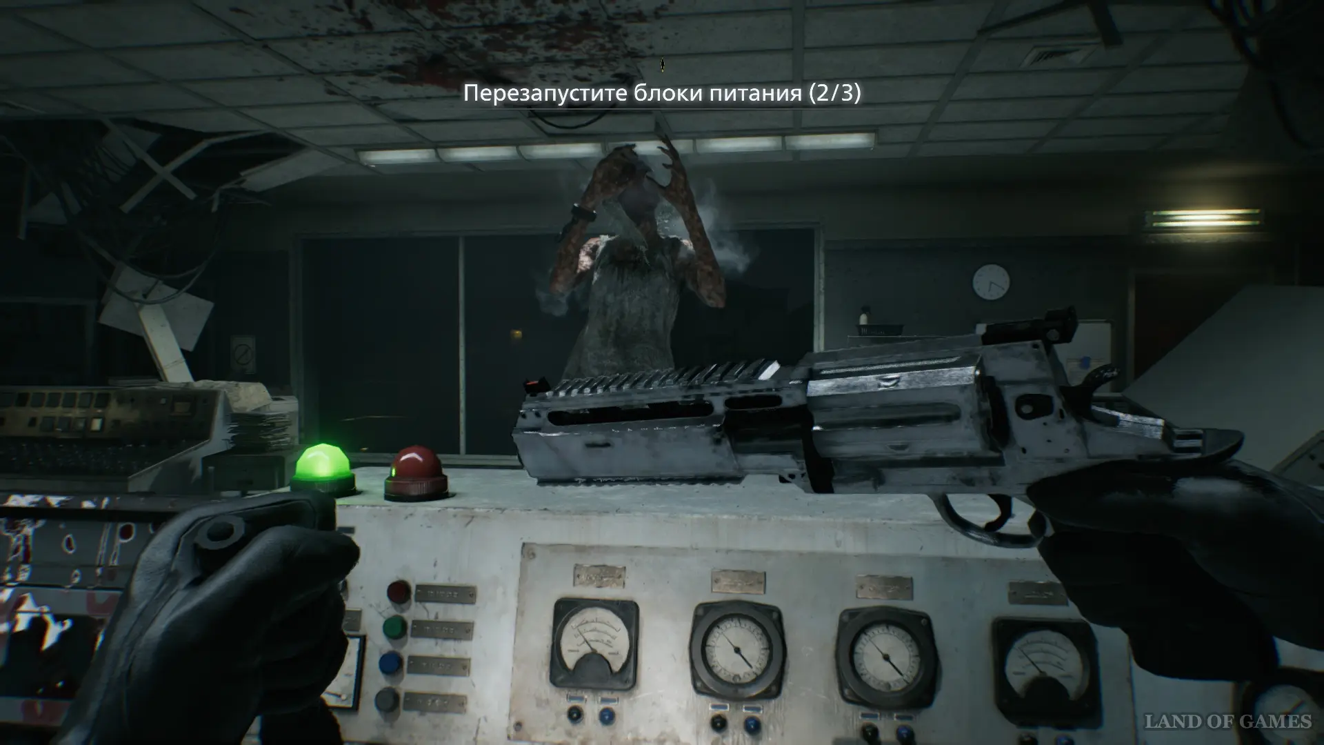 Когда вы попытаетесь активировать блок питания, в комнате появится Девочка и отбросит Грейс от панели управления. Вам необходимо срочно выстрелить в монстра и как можно быстрее повернуть рычаг, чтобы в комнате появился свет.