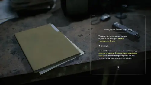 Осмотрите помещение: рядом с точкой сохранения будут лежать патроны для Реквиема и Инструкция к потолочному люку.