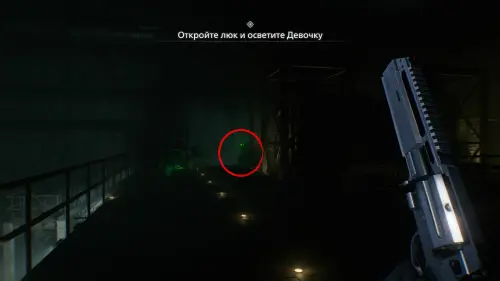 Быстро бегите к зеленому переключателю и нажмите его — это запустит открытие люка. Затем, если у вас остались патроны, выстрелите в Девочку из Реквиема, либо используйте обычное оружие.