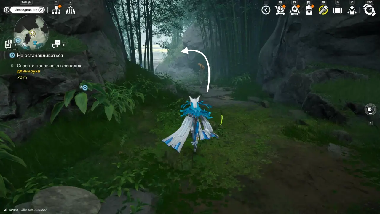 После побега зверек направится подальше от лагеря Циньбо. Продолжайте двигаться за ним. В конечном итоге следы приведут вас к области левее от Станции экологических исследований.