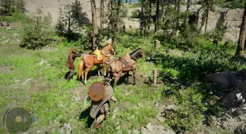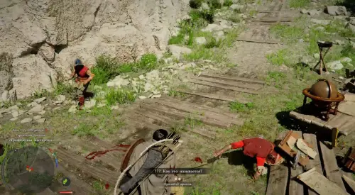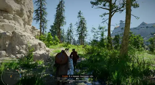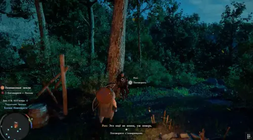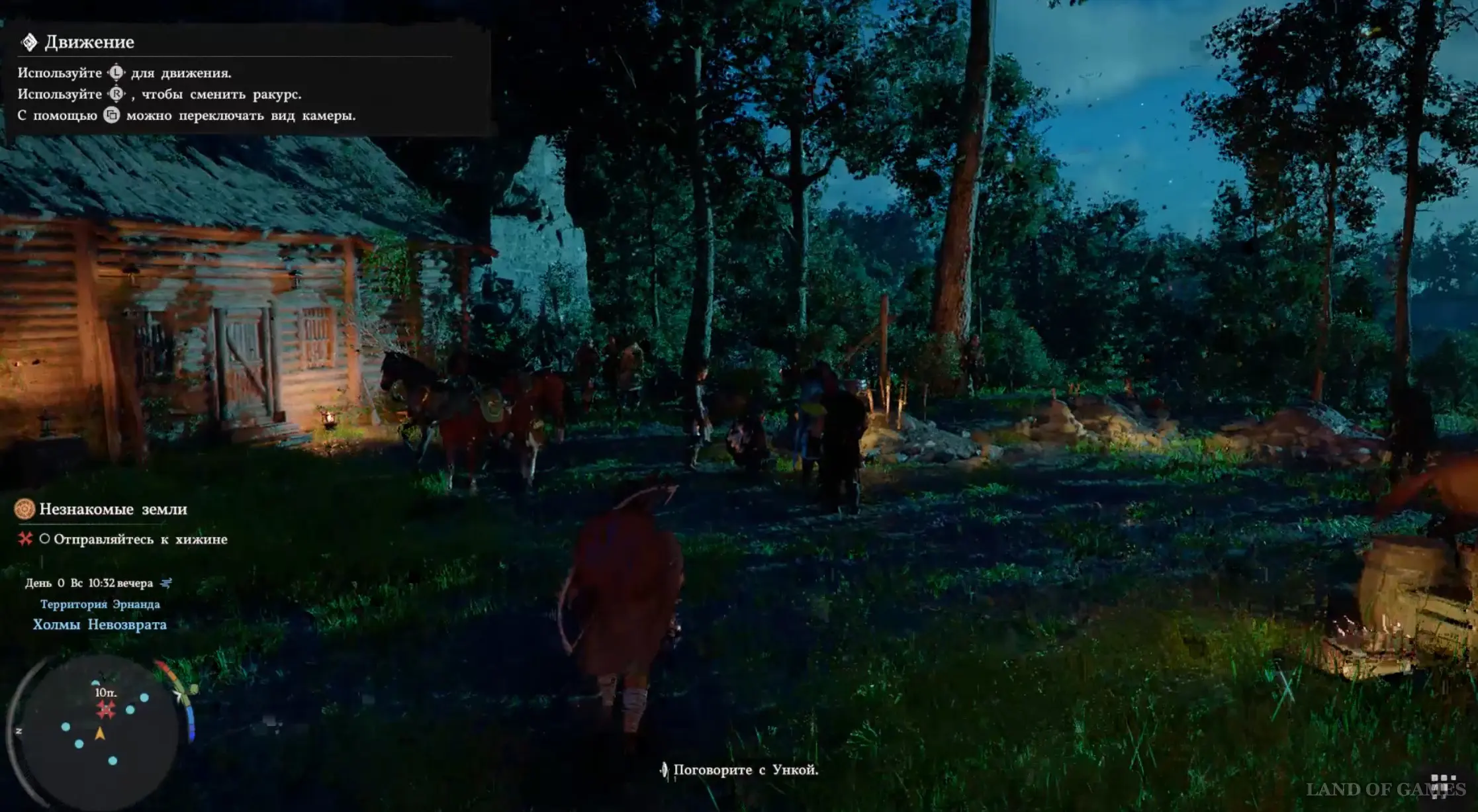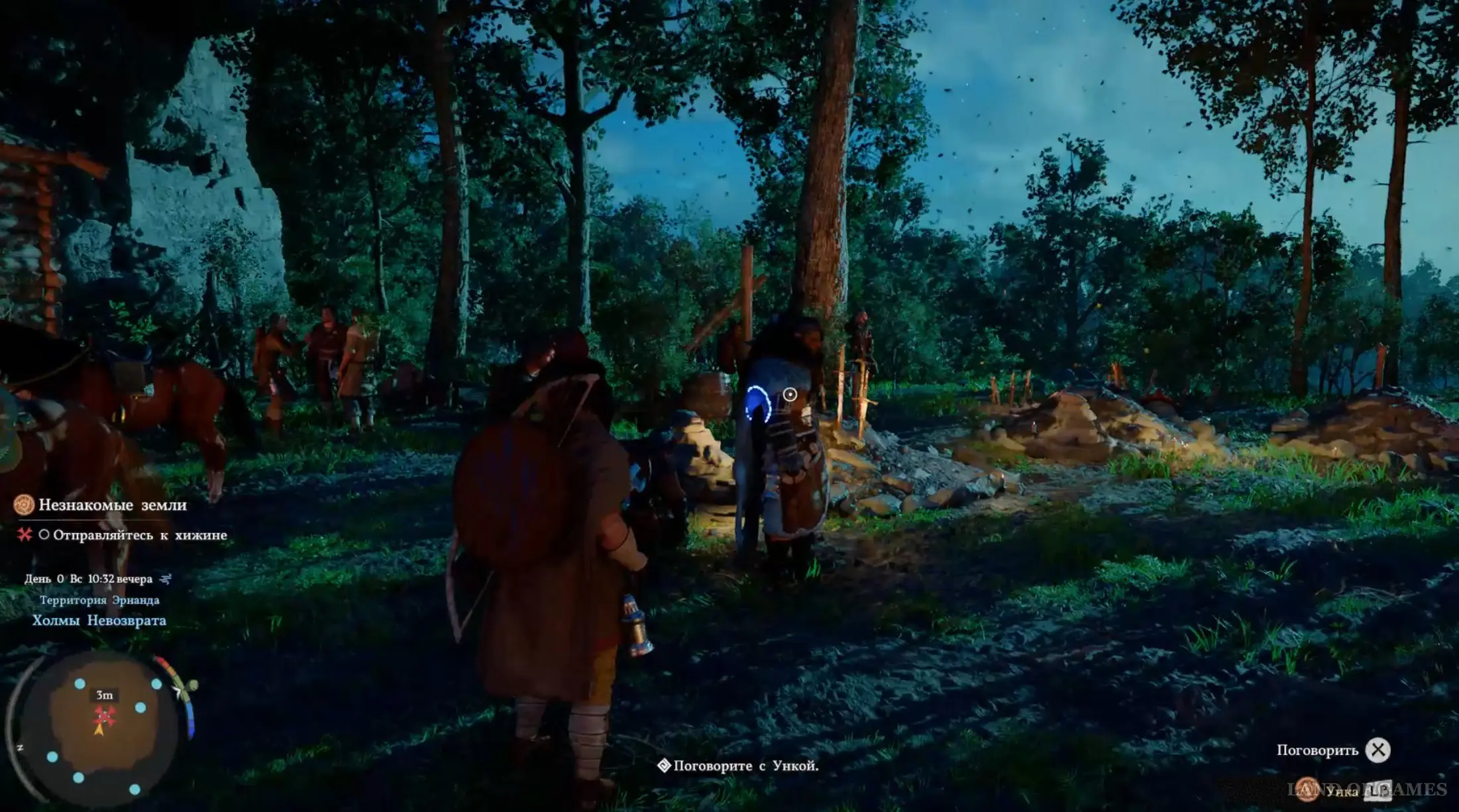 Итак, вы появитесь в лагере. Сразу же идите к хижине чуть ниже и впереди. Рядом с могилой вы увидите группу людей – подойдите к ним, приблизьтесь к Уике, зажмите кнопку LB на геймпаде, наведите прицел на нужного персонажа и зажмите «Х», чтобы поболтать с ним.