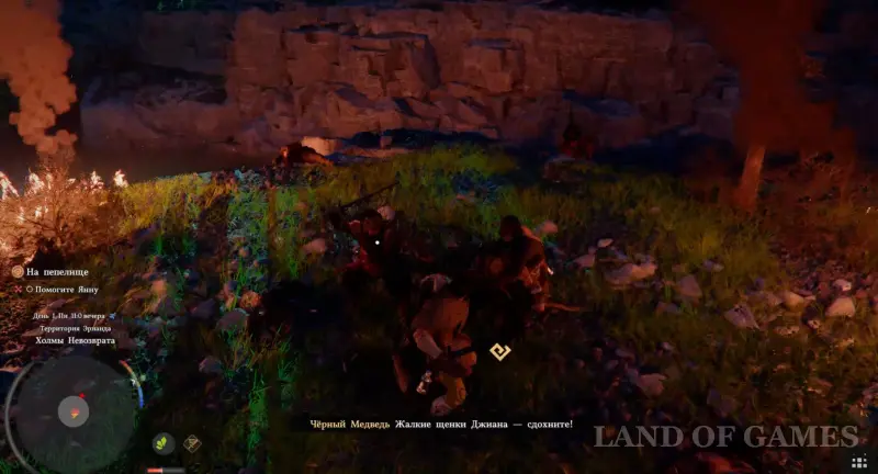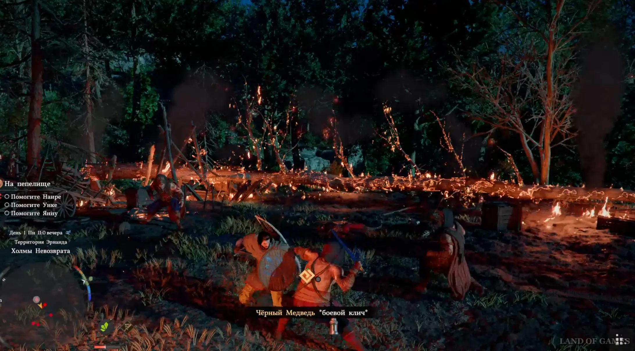 После беседы с Уликом просмотрите небольшую кат-сцену, а затем подойдите к Мариусу и Россу, стоящим неподалеку, и тоже поговорите с ними. Теперь можете войти внутрь хижины для старта нового ролика, в рамках которого на ваш лагерь нападут Черные медведи.