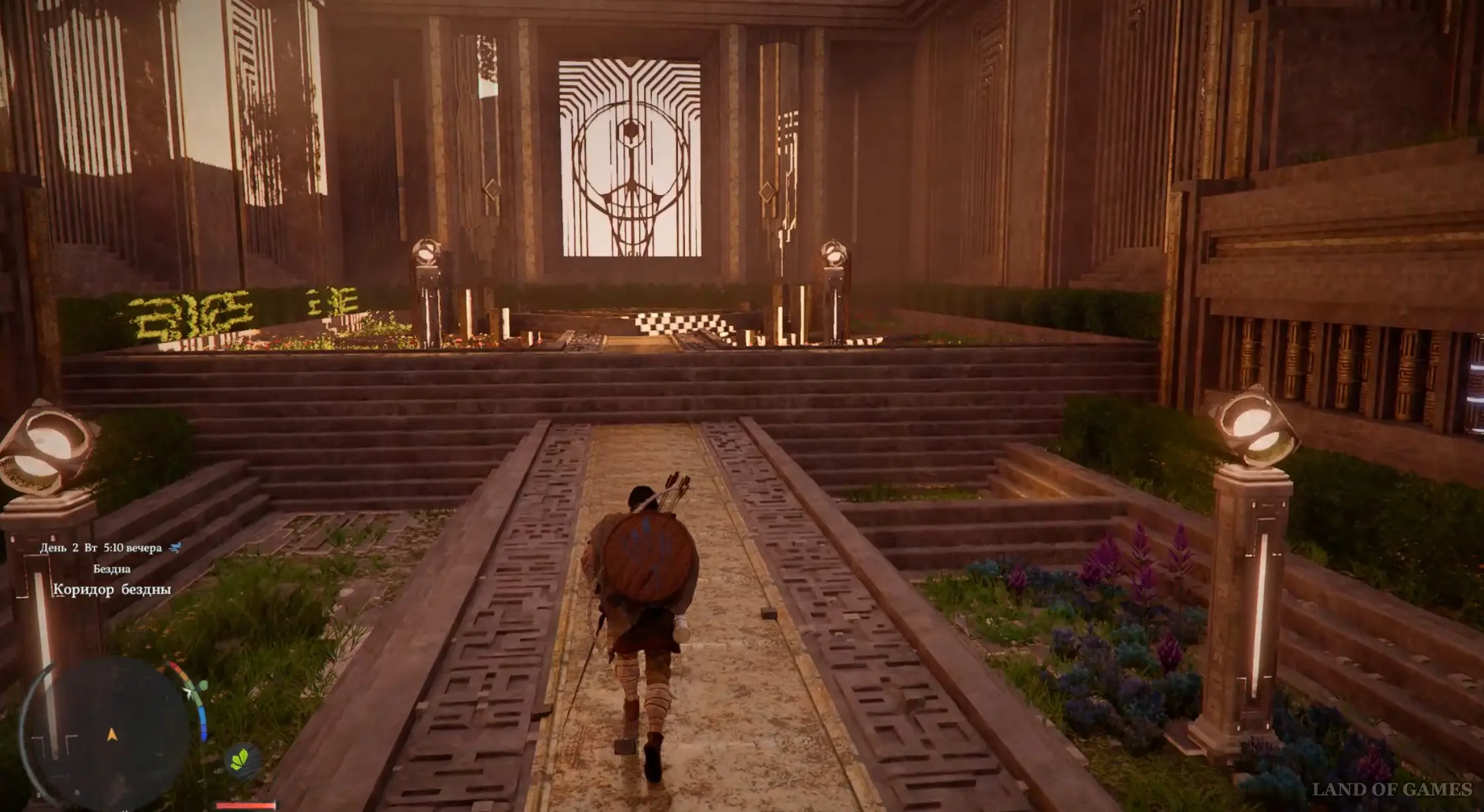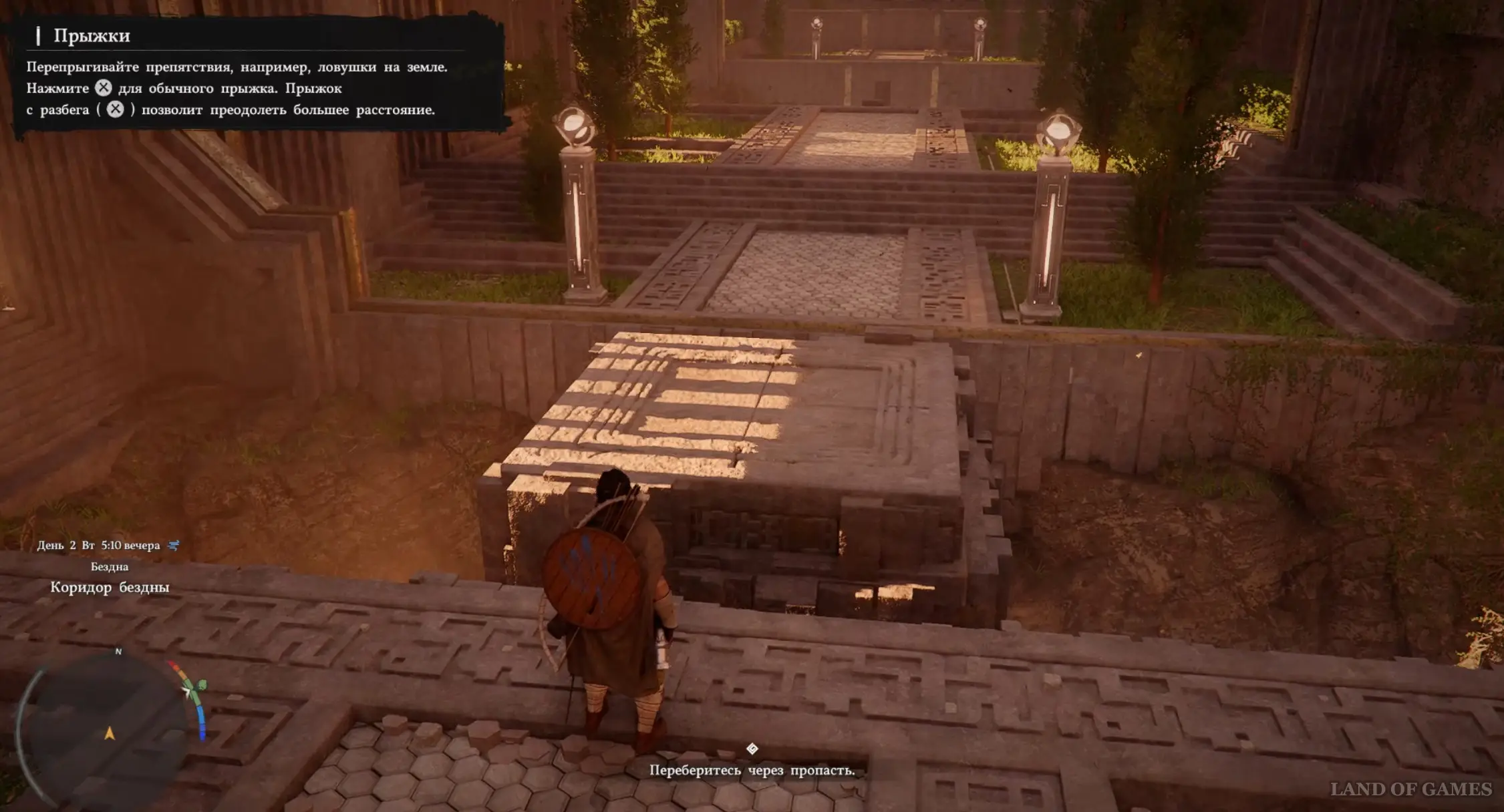 Просмотрев ролик, вы окажетесь в Коридоре бездны. Начните бежать вперед, зажав кнопку «А» на геймпаде. Перепрыгните через пропасть, нажав на «Х» для выполнения прыжка. Можете перед этим сначала разогнаться.