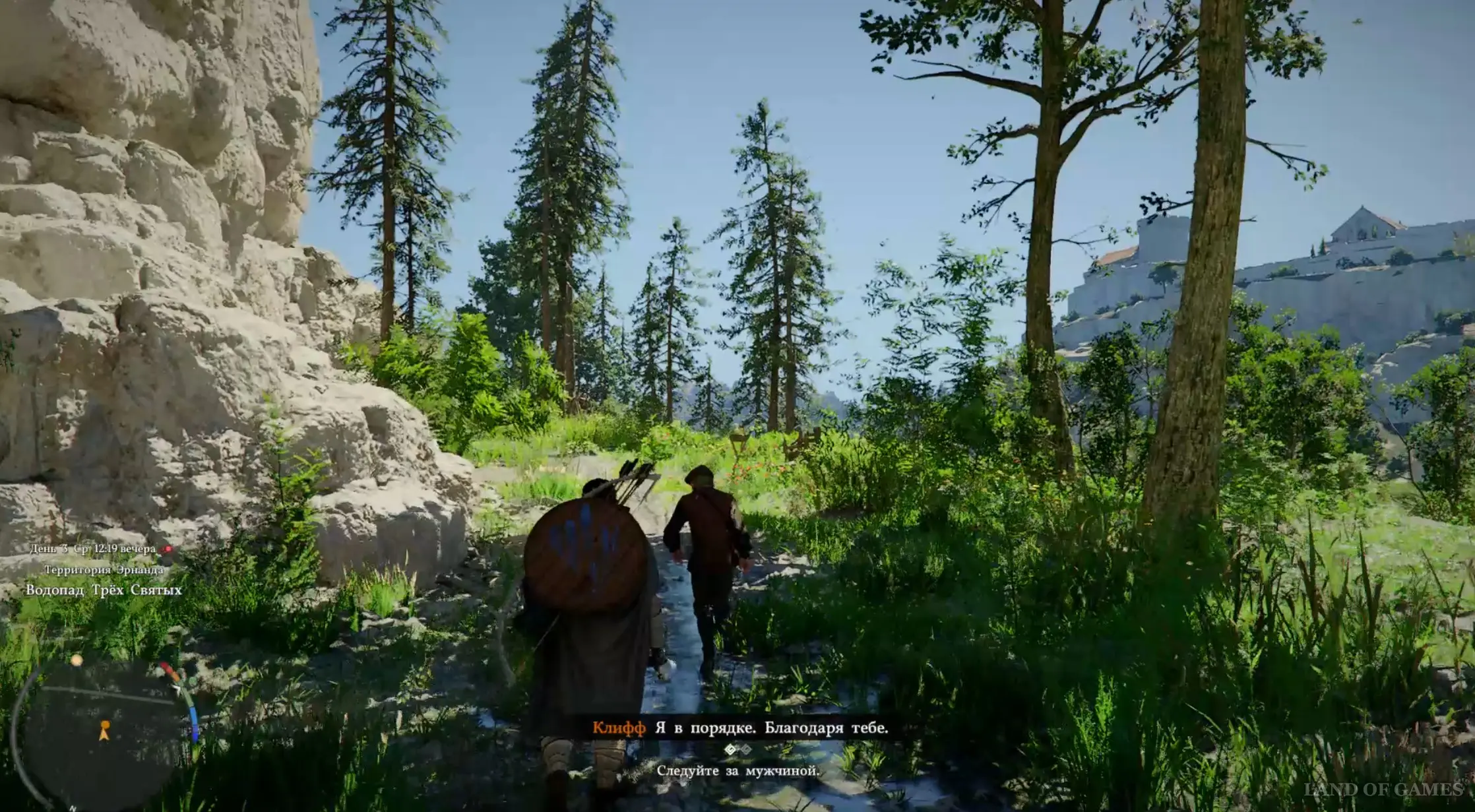 Теперь можете бежать к Янну, который упадет в воду, поэтому вам придется разбираться с врагами в одиночестве. Победите оставшуюся группу наемников и посмотрите ролик с появлением Мердина, который убьет главного героя и сбросит его тело в реку (так и должно быть, поэтому переигрывать данный момент не имеет смысла).