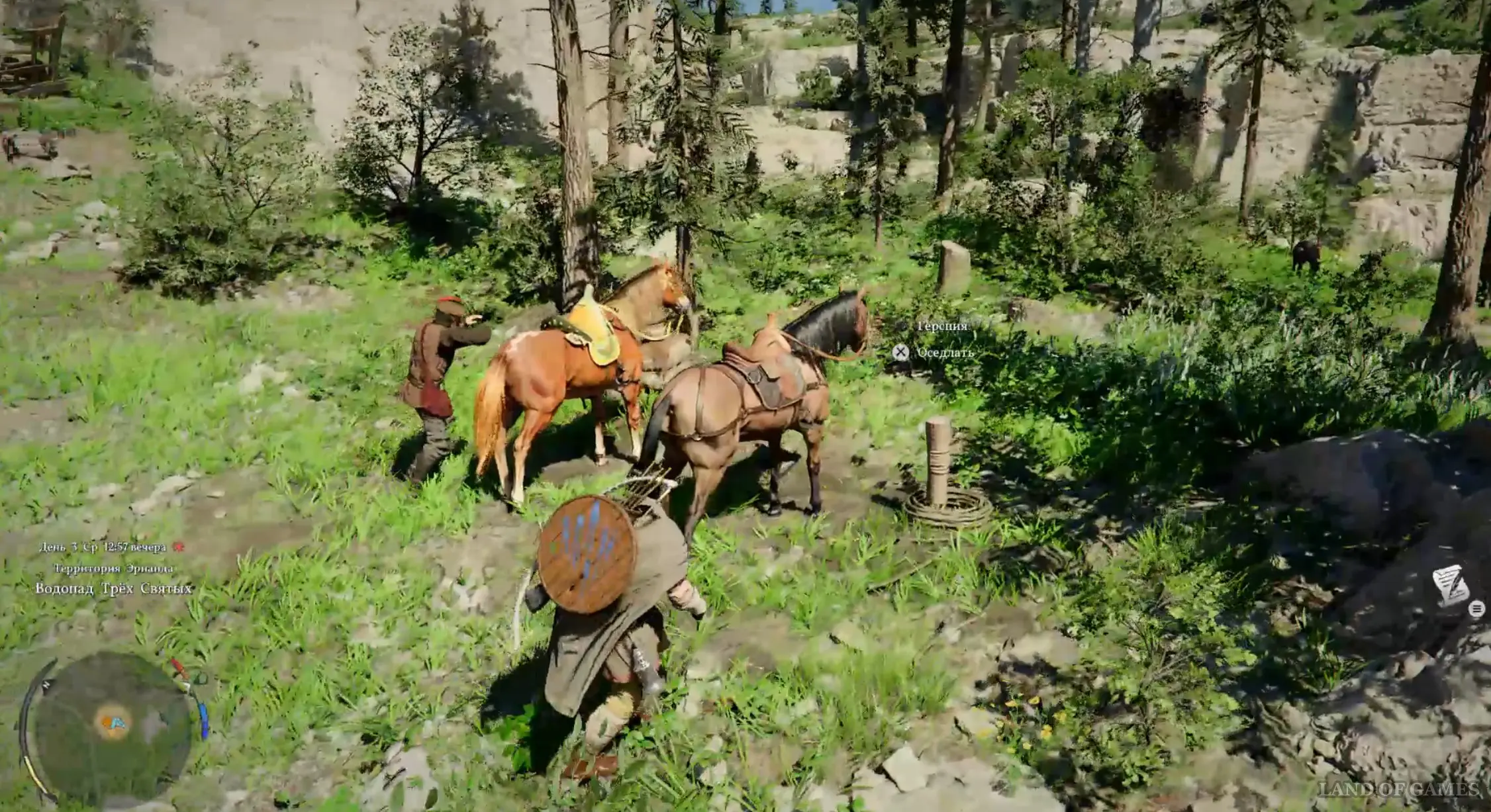 Победив врагов, вновь двигайтесь за мужчиной наверх и оседлайте свою лошадь. В будущем вы сможете в любой момент времени позвать коня, нажав «наверх» на D-pad геймпада. Скачите вместе с ним в город, и на этом пролог подойдет к концу, что приведет к началу новой сюжетной главы «Первая встреча».
