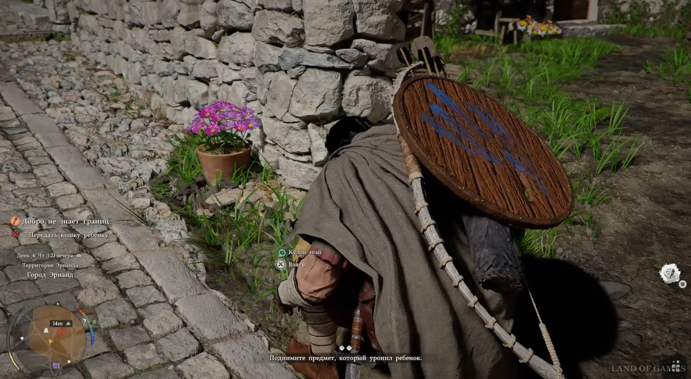 Вновь возвратитесь в город и подойдите к мальчику в зеленом плаще. Его кошка забралась на крышу и не хочет спускаться. Он попросит вас вернуть ему питомца. Заберитесь на крышу и подойдите к кошке, однако она тут же ускользнет от вас. Когда она снова остановится, подбегите к ней и поднимите, зажав «Х». Вы автоматически вернете питомца ребенку.