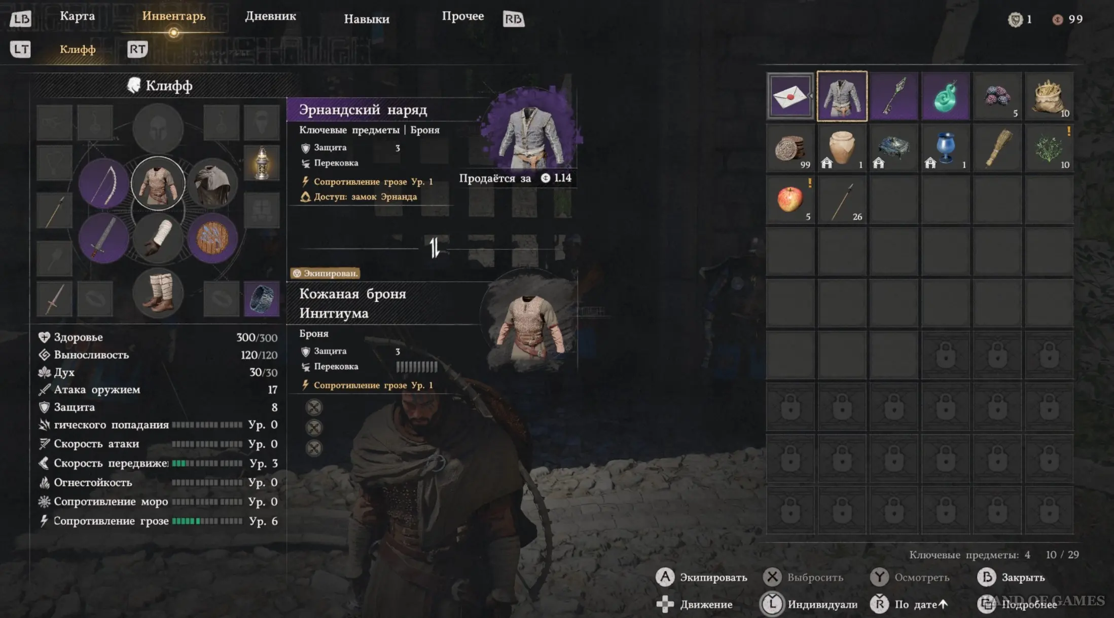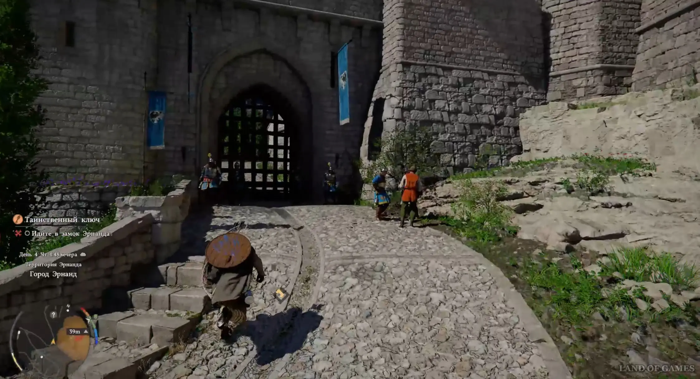 Чтобы пройти внутрь, вам потребуется подходящий наряд. Вновь откройте инвентарь, найдите там Эрнандский наряд и экипируйте им своего персонажа. Опять подойдите к стражникам, и они без проблем пропустят вас на территорию замка. Поднимитесь еще выше и поверните направо ко вторым вратам – вам позволят пройти дальше.