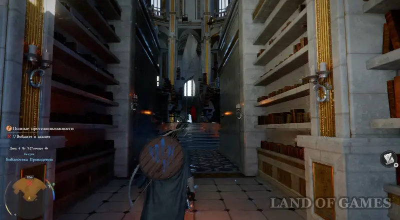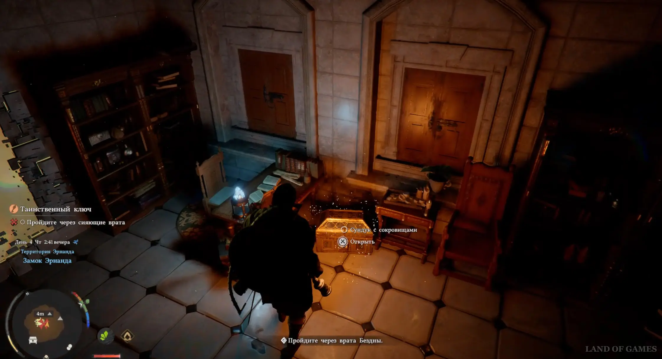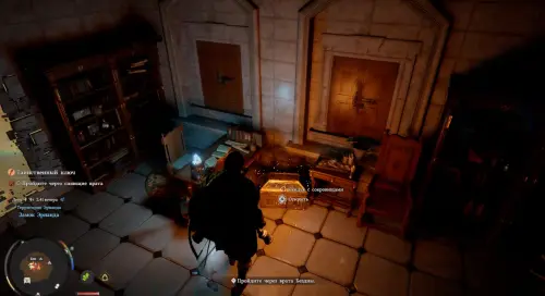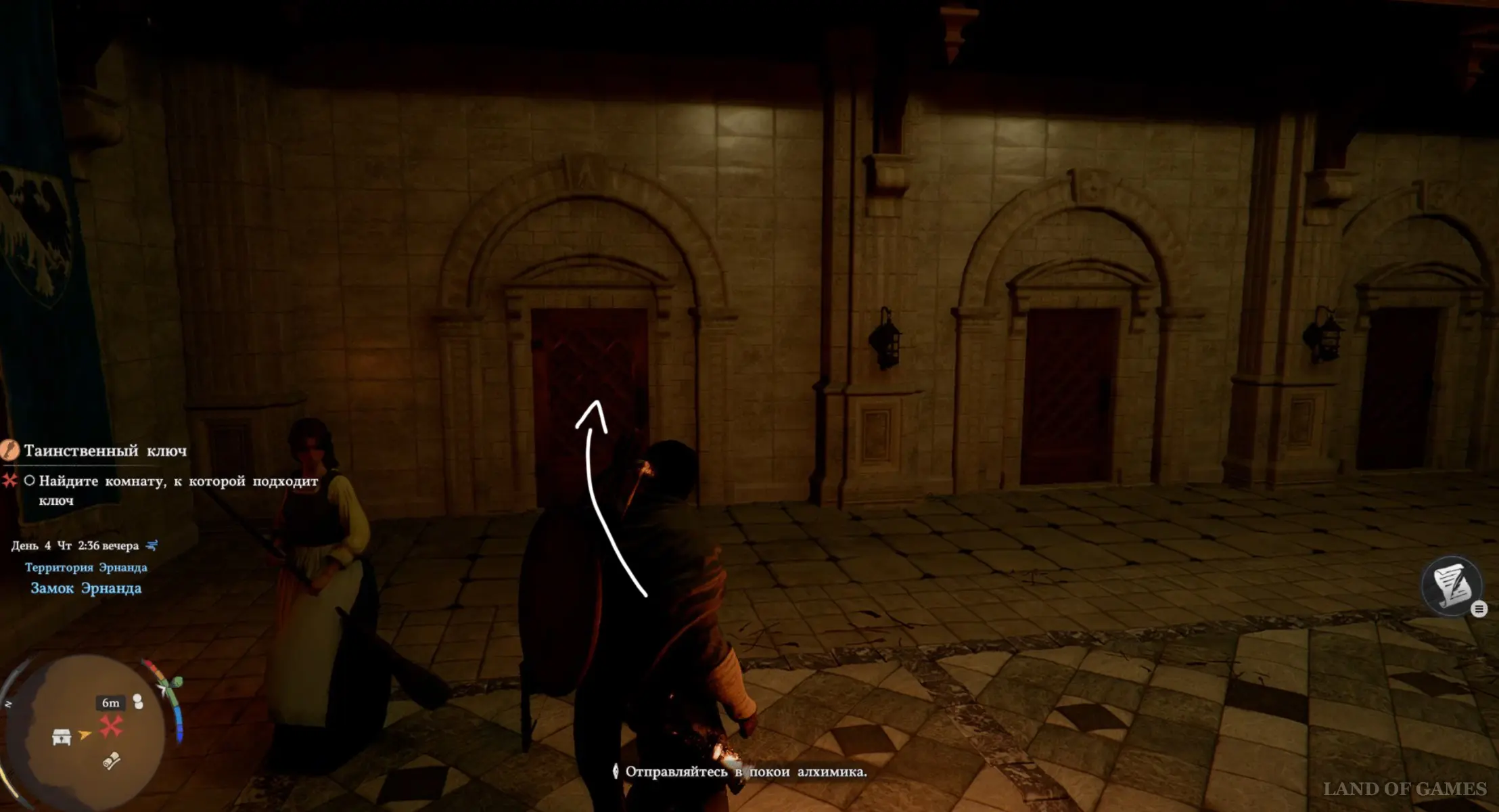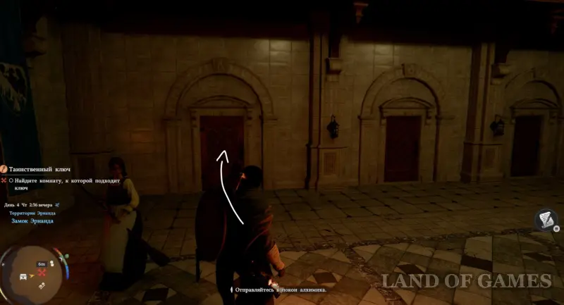Поднимитесь по лесенке, сверните влево, пройдите через арку и снова поверните направо. В итоге вы окажетесь в замке. Теперь сразу же сверните вправо и поднимитесь по лестнице на второй этаж. Опять поверните направо, а затем сразу налево и откройте первую дверь слева полученным ранее ключиком.