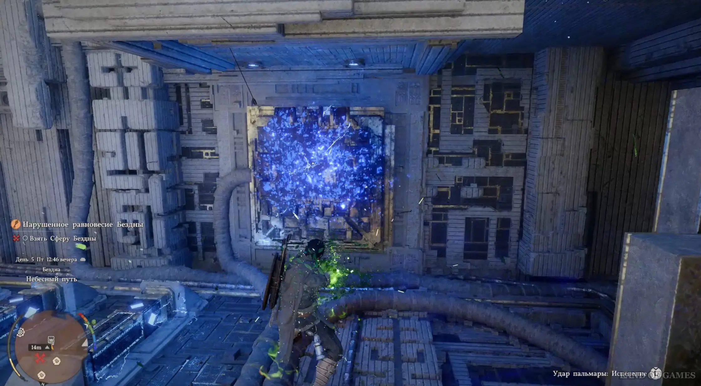 Отметим, что некоторые платформы двигаются, поэтому если вы оказались в тупике, то просто осмотритесь вокруг – скорее всего, неподалеку находится движущаяся площадка, которую нужно дождаться. Затем доберитесь до круга телепортации, который переместит вас на другой островок. Продолжайте перепрыгивать по платформам, чтобы в конечном итоге активировать еще одно Средоточие Бездны.