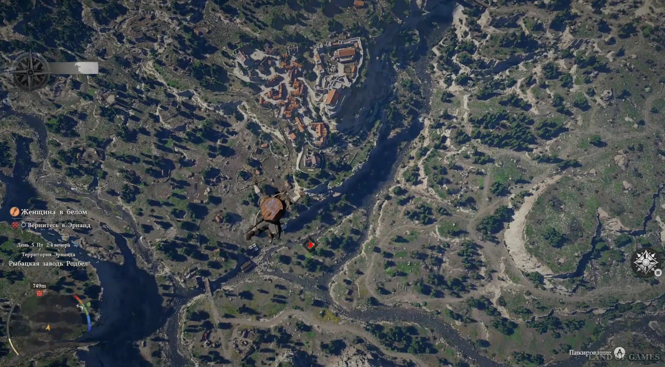 После беседы с ней и стариком, вы спрыгните вниз и научитесь новому умению – Полет. На данном этапе он довольно быстро расходует вашу выносливость. По этой причине активировать его следует прямо перед падением на землю (примерно за 20-30 метров). В ином случае крылья исчезнут слишком рано, и вы разобьетесь.