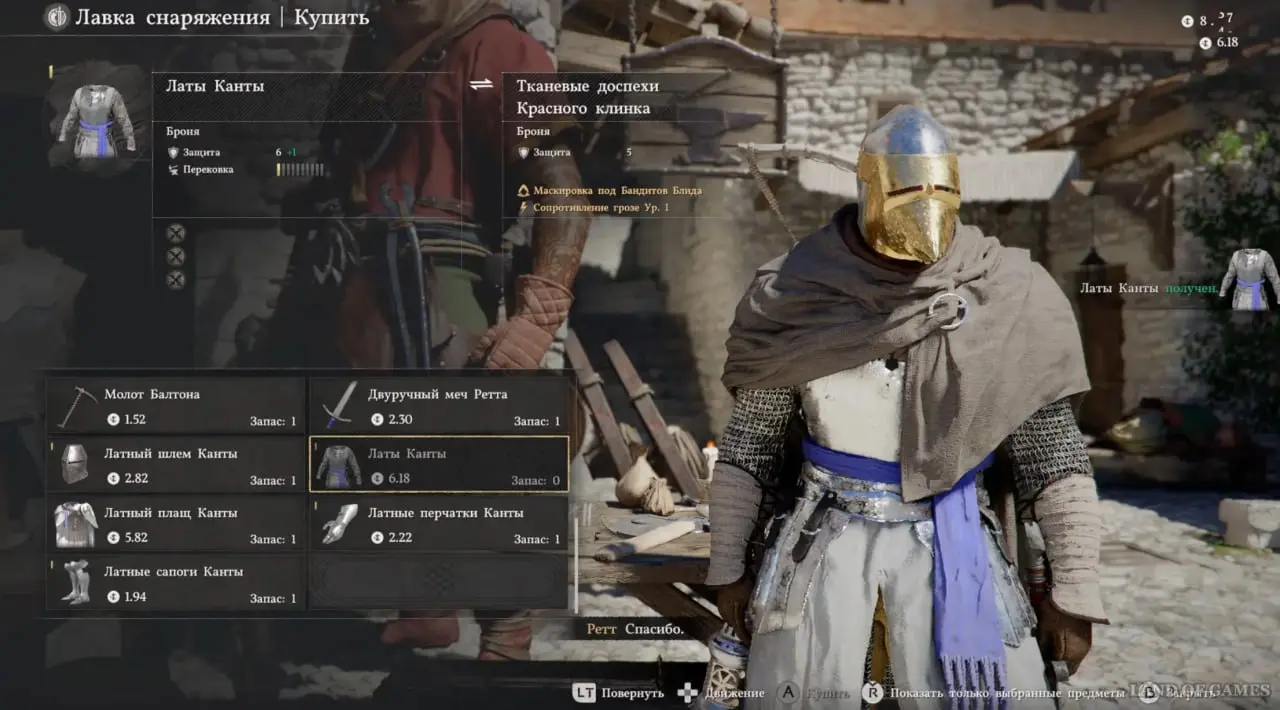 Кроме того, загляните к Ретту и обзаведитесь хотя бы частью комплекта брони Канты: латами, перчатками и сапогами. Усильте их с помощью перековки до 2-3 уровня, иначе предстоящая битва может оказаться куда более суровым испытанием, чем кажется на первый взгляд. Изучение перековки происходит в квесте «Просьба Турнали», его прохождение читайте в отдельном гайде.