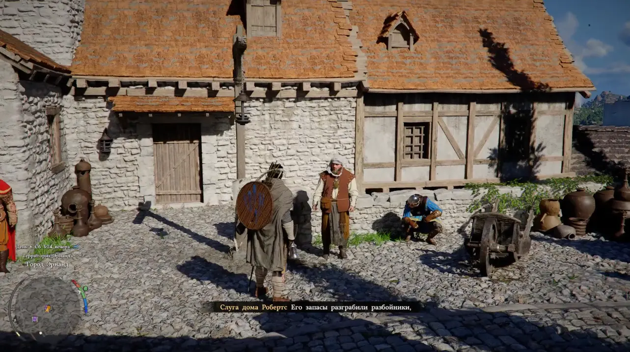 Взаимодействуя с ним вы узнаете, что это слуга дома Робертс, который вот уже 10 лет трудится в графском поместье, но его запасы разграбили разбойники, а господин этого мужчины буквально в ярости и злится на него. Также в разговоре слуга упомянет куда-то исчезнувшего мажордома. Его поиск наша следующая цель.