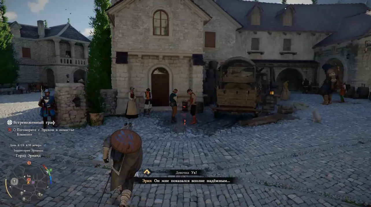 Описание квеста гласит, что перед поместьем Блюмонт стоит человек и тяжело вздыхает, и надо поговорить с ним, чтобы узнать, что случилось и можно ли ему помочь. Отправляемся к маркеру задания в город Эрнанд.