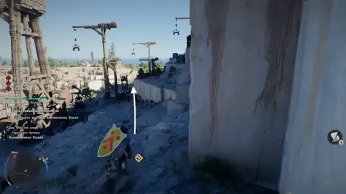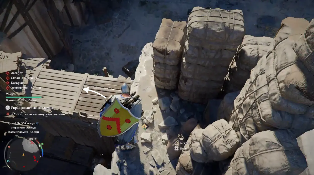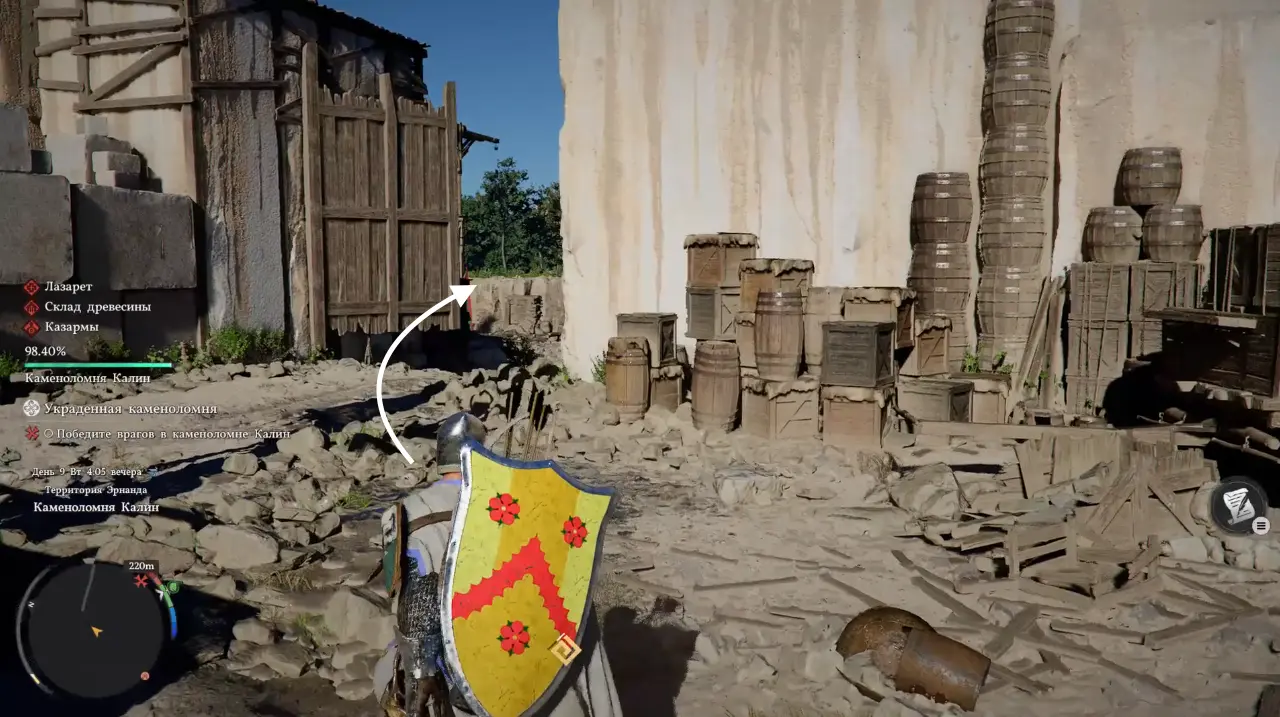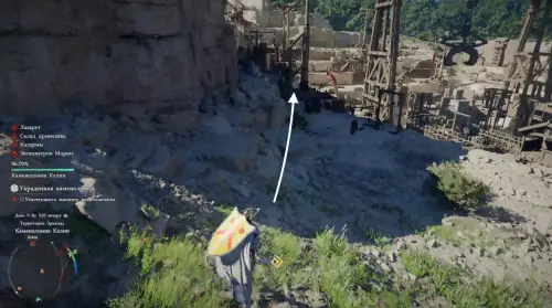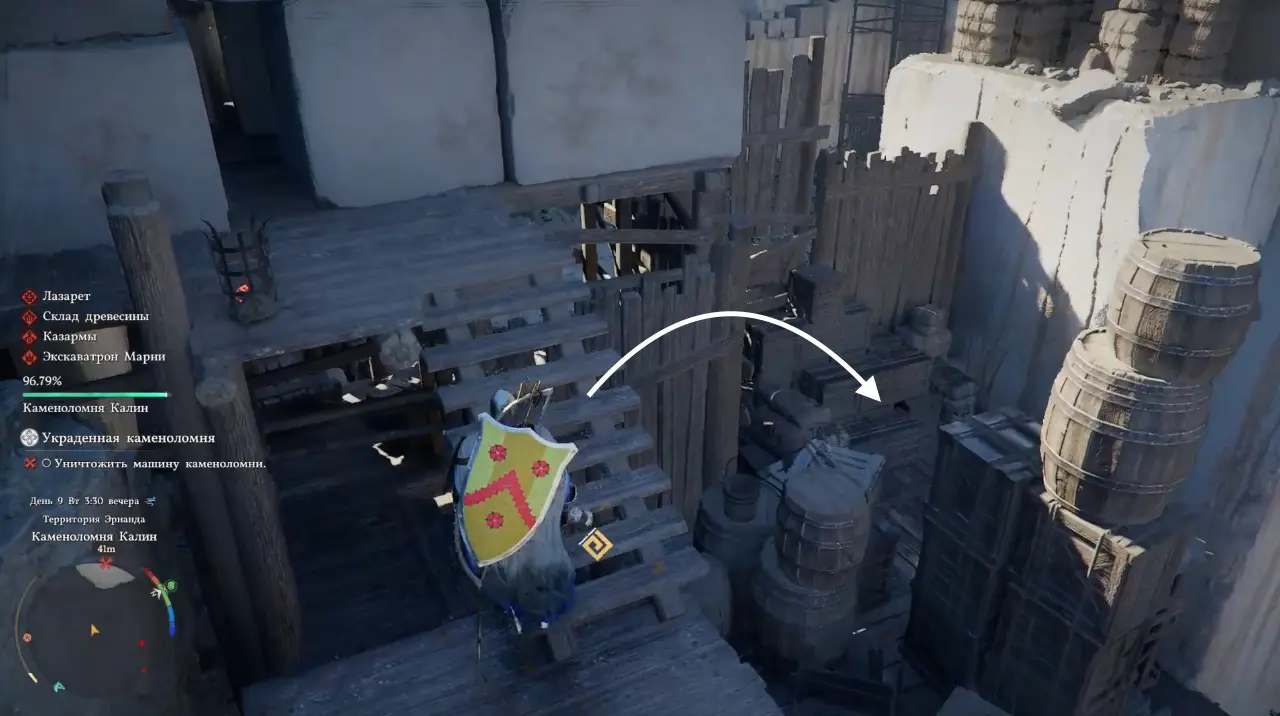 Продвигаясь глубже в карьер и зачищая локацию от врагов вы наткнетесь на помосты и лестницы из дерева. Вскарабкайтесь по ним вверх, а затем спрыгните влево и взберитесь уже по деревянным ящикам и большим камням еще выше. Затем снова спрыгните, но уже на другую сторону забора и еще раз на землю. Тем самым вам удастся избежать столкновений с рядовыми противниками и сразу добраться до босса.