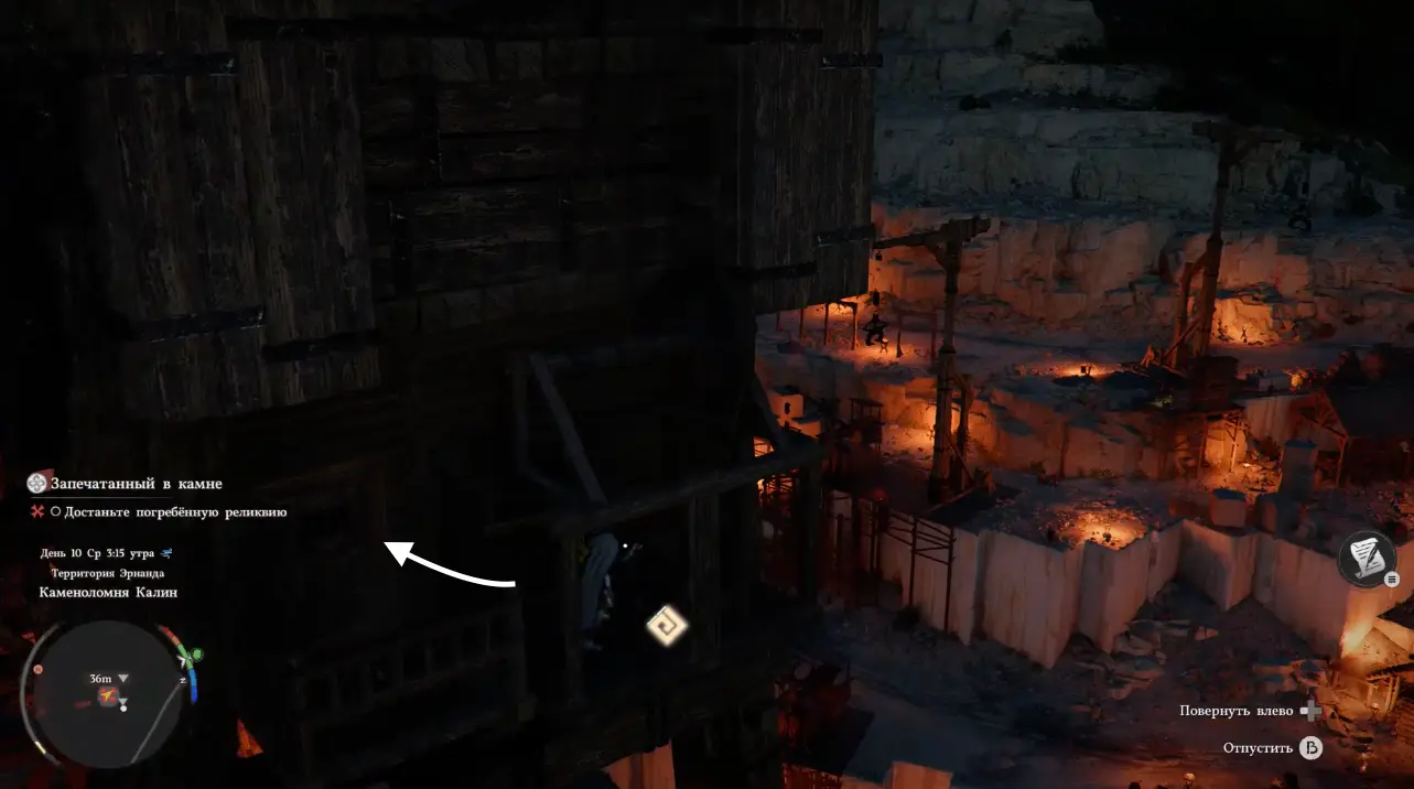 Если скриншоты вам кажутся недостаточно информативными, то посмотрите гифку ниже, на которой демонстрируется весь процесс. Вытащив камень, спуститесь с крана вниз, используя тот же подъемник, что и раньше.