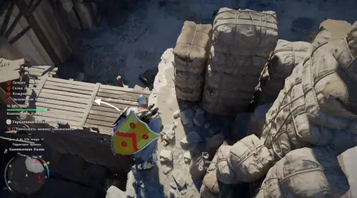 Затем перебегите на противоположную сторону и двигайтесь прямо, попутно зачищая врагов, пока не доберетесь до деревянного строения с щитами с передней стороны. Здесь вам также придется разобраться с бандитами.