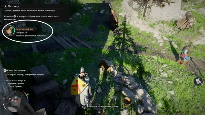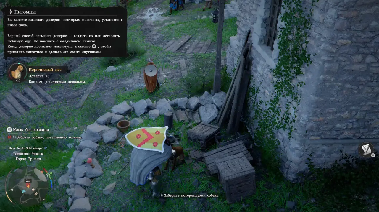 Приручив щенка и завершив задание, вы получаете нового компаньона, который будет сопровождать вас в дальнейших приключениях. История, начавшаяся с небольшого спора, становится отправной точкой для освоения целой системы, связанной с животными и их доверием к игроку.