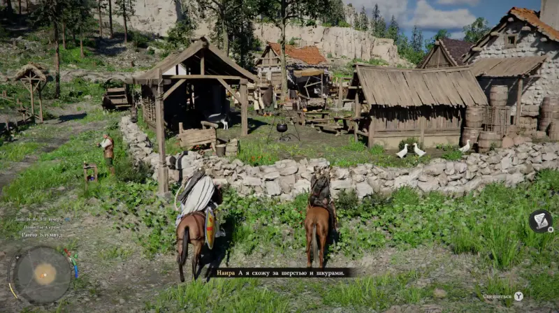 После разговора игра даст задание следовать за Наирой на лошади. Оседлайте скакуна и отправляйтесь в путь, концом которого станет Ранчо Блумвуд.