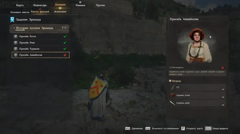 Задание доступно в Дневнике в разделе Квесты фракций – Истории купцов Эрнанда. Доступ к нему открывается, как правило, после выполнения предыдущих трех просьб и продвижения по основной сюжетной линии.