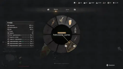 На месте экипируйте удочку через колесо инструментов.