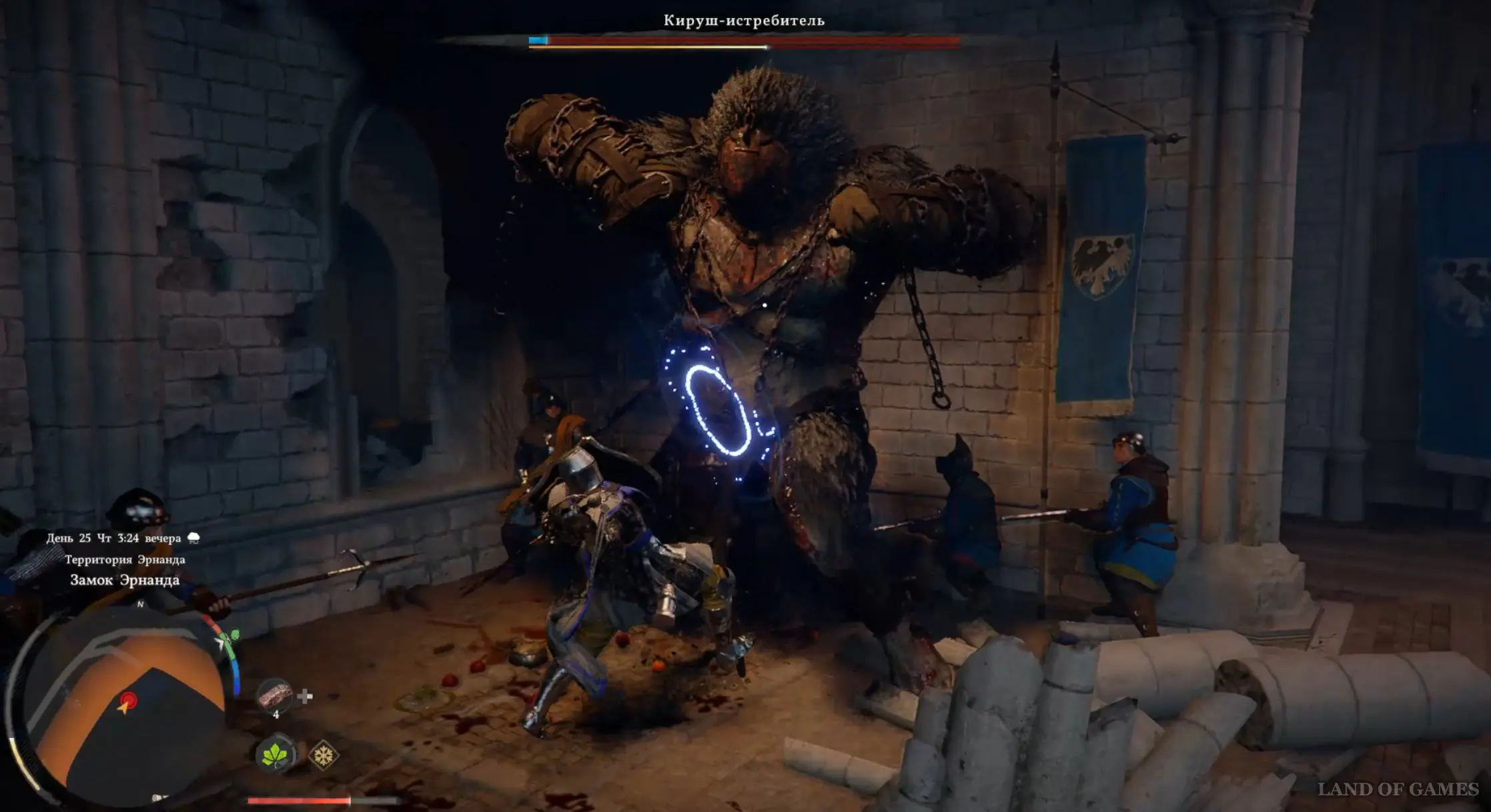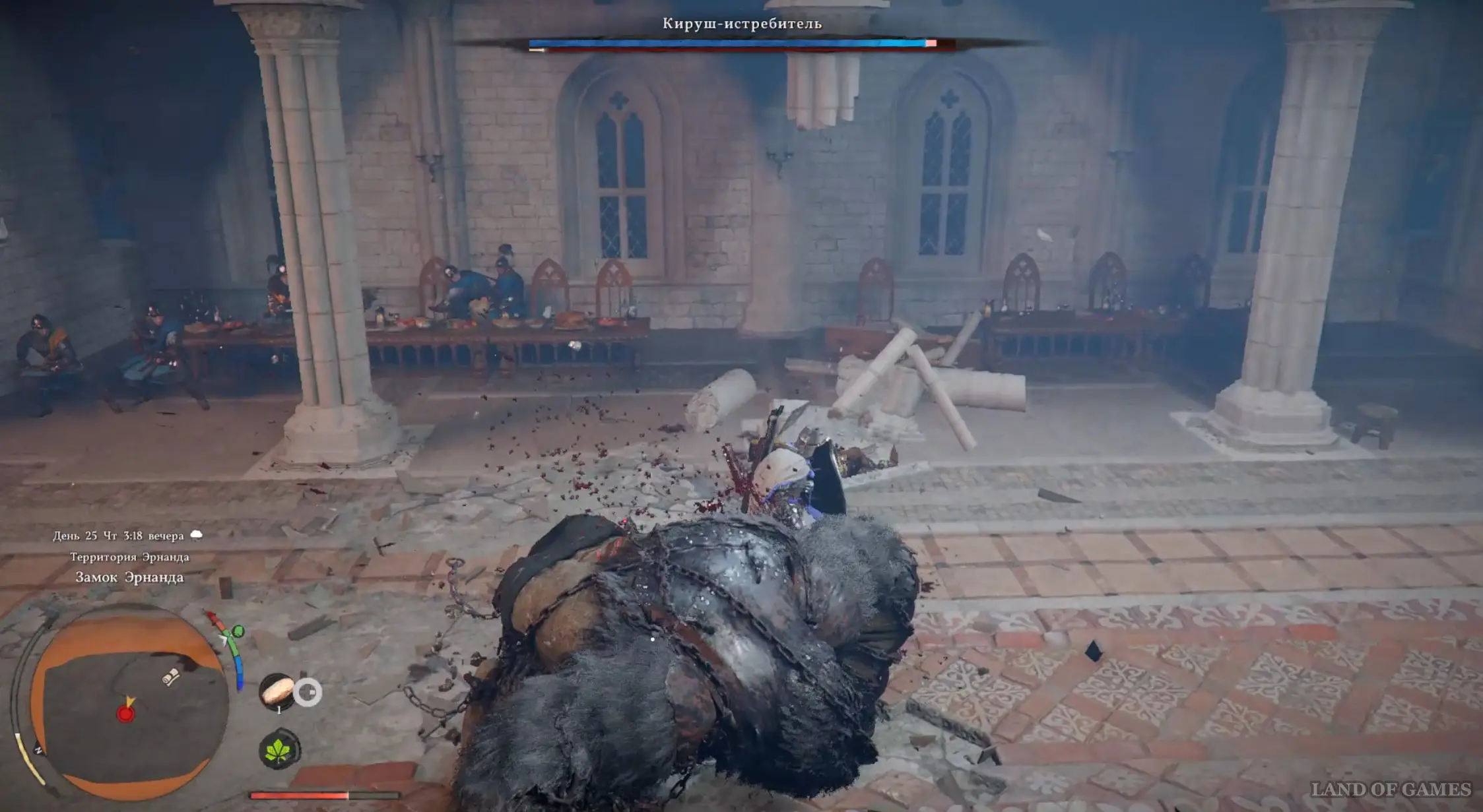 Отправляйтесь на пиршество, которое должно состояться в замке Эрнанда. Для этого пройдите через ворота и подойдите к маркизу, разговаривающему с другими дворянами. Далее посмотрите продолжительную кат-сцену, после которой стартует битва с боссом.