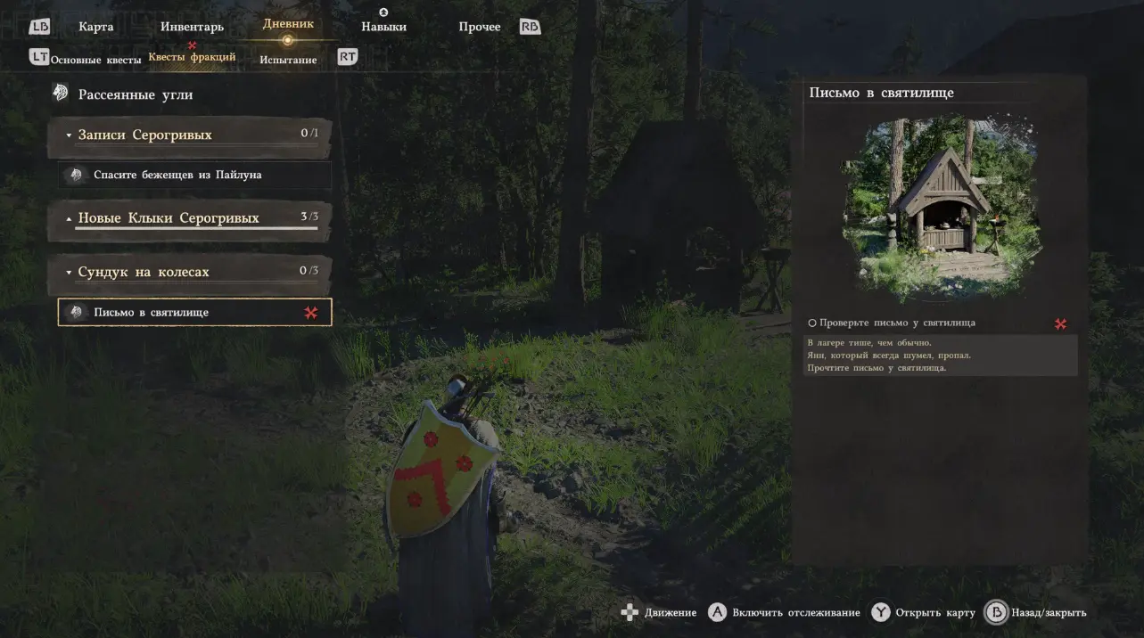 Эта миссия входит в группу заданий Серогривых в разделе Квесты фракций в Дневнике и состоит из 3 глав. Для старта примите задание и начните его отслеживание.