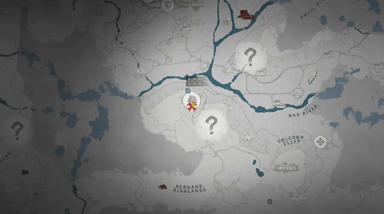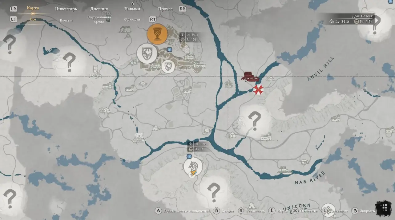 Далее ваш путь лежит выше и левее от текущей точки в зону Анвил Риверсайд. Место отмечено на карте рядом с отметкой красного строения – Рыбацкой заводи Родбел.