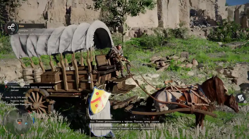 Завершив задание, вы не только продвинетесь дальше по линии Серогривых, но и откроете для себя возможность продавать повозки перекупщикам. Эта механика может пригодиться и в дальнейшем, позволяя извлекать прибыль даже из случайно найденного или угнанного транспорта. Несмотря на провал плана Янна, для вас эта вылазка оказывается вполне выгодной.