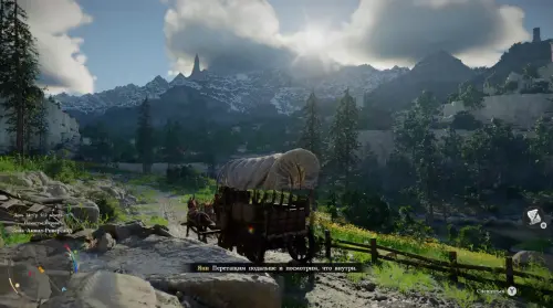 Как только вы окажетесь на месте, игра даст задание подождать Янна. Через некоторое время (обычно 1-2 минуты) он явится на повозке и скажет запрыгивать в нее. Взаимодействуйте с повозкой и отправляйтесь в путь.