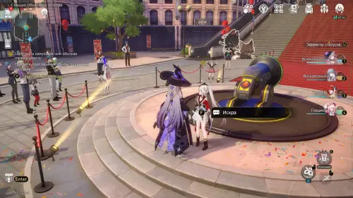 Попав в первый павильон, «Белобог», пройдите викторину от Искры. Можете выбирать любые ответы — Эванесса поможет вам. Наконец, запустите Пылающее копье, чтобы порадовать фанатов.