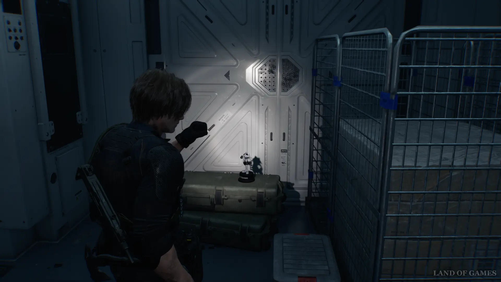 Оказавшись в большом зале, откройте первый контейнер слева — внутри вы обнаружите набедренную сумку.