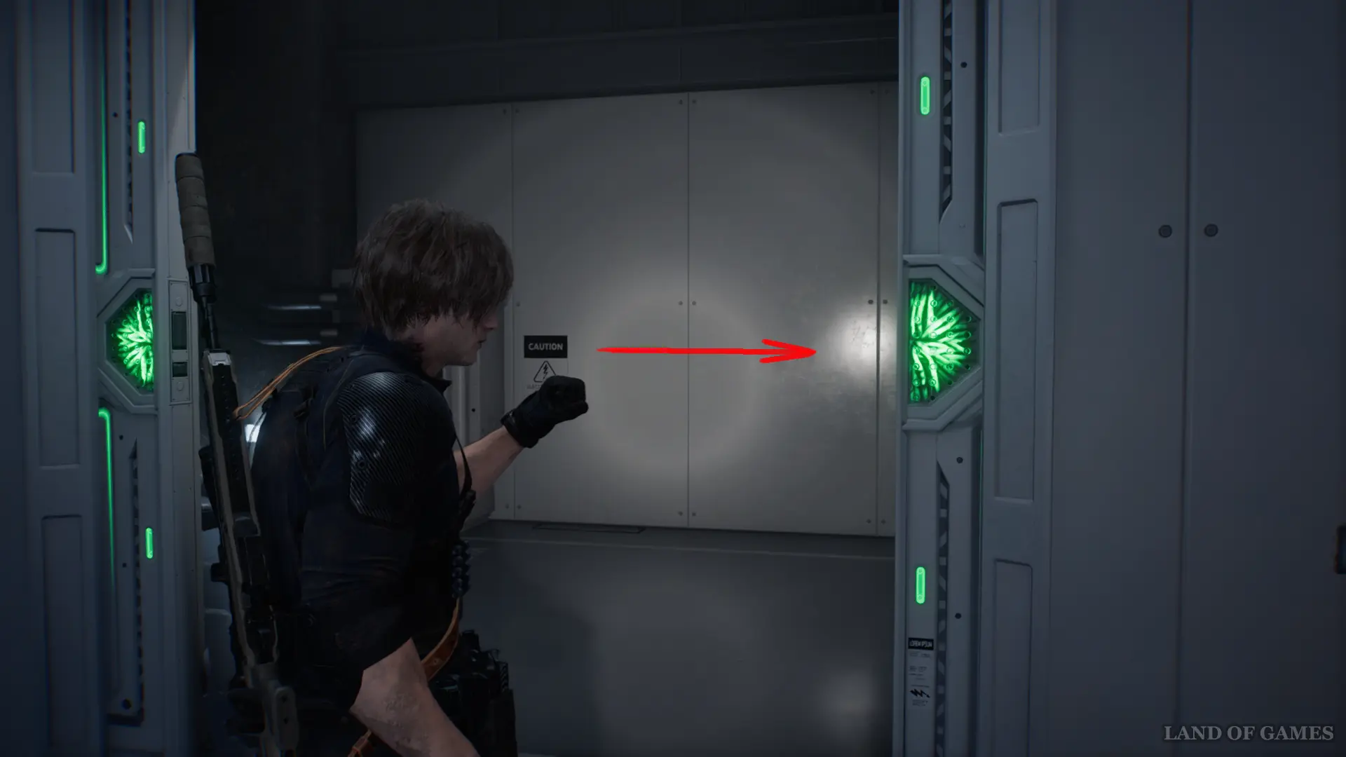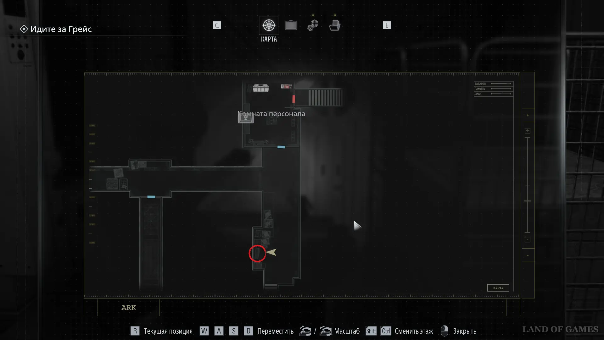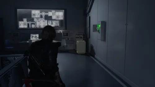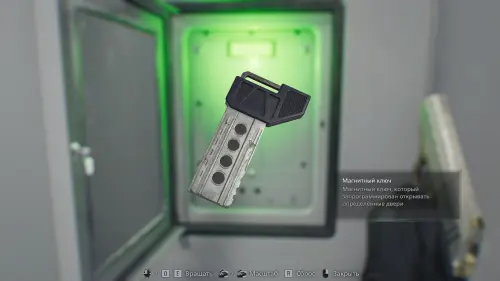 После сюжетного ролика осмотрите помещение и заберите со стены Магнитный ключ. Далее, поднимитесь на этаж выше и откройте с помощью ключа дверь у места сохранения.