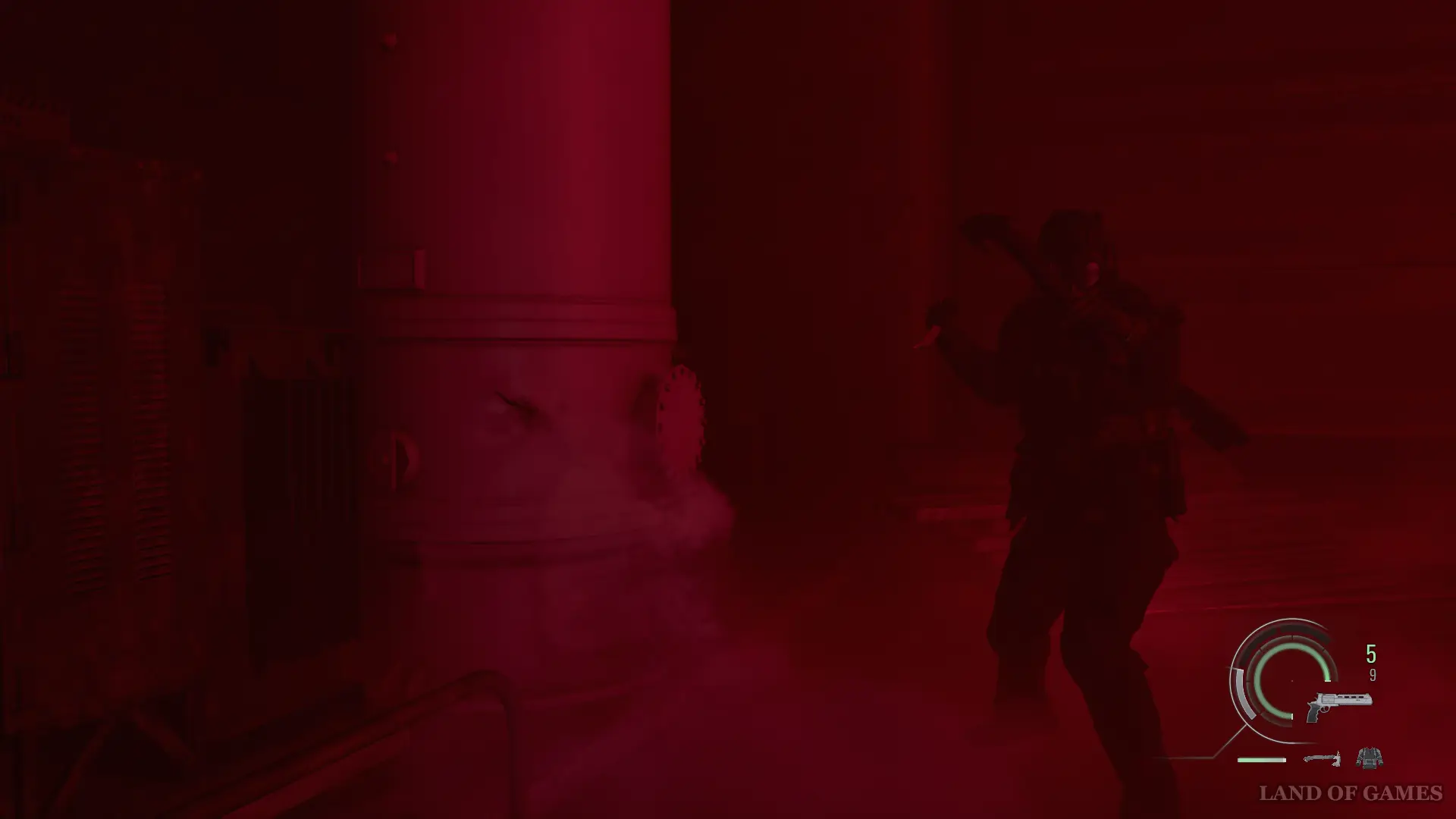 Когда вы нанесете достаточно урона, помещение заполнится дымом и противник начнет хаотично перемещаться. Иногда он будет отбегать в сторону, чтобы выстрелить в вас из оружия.