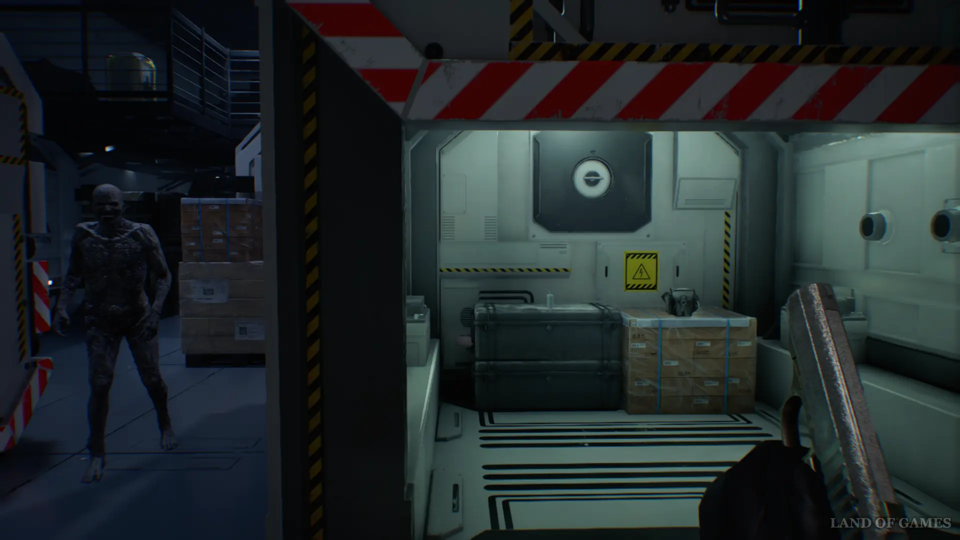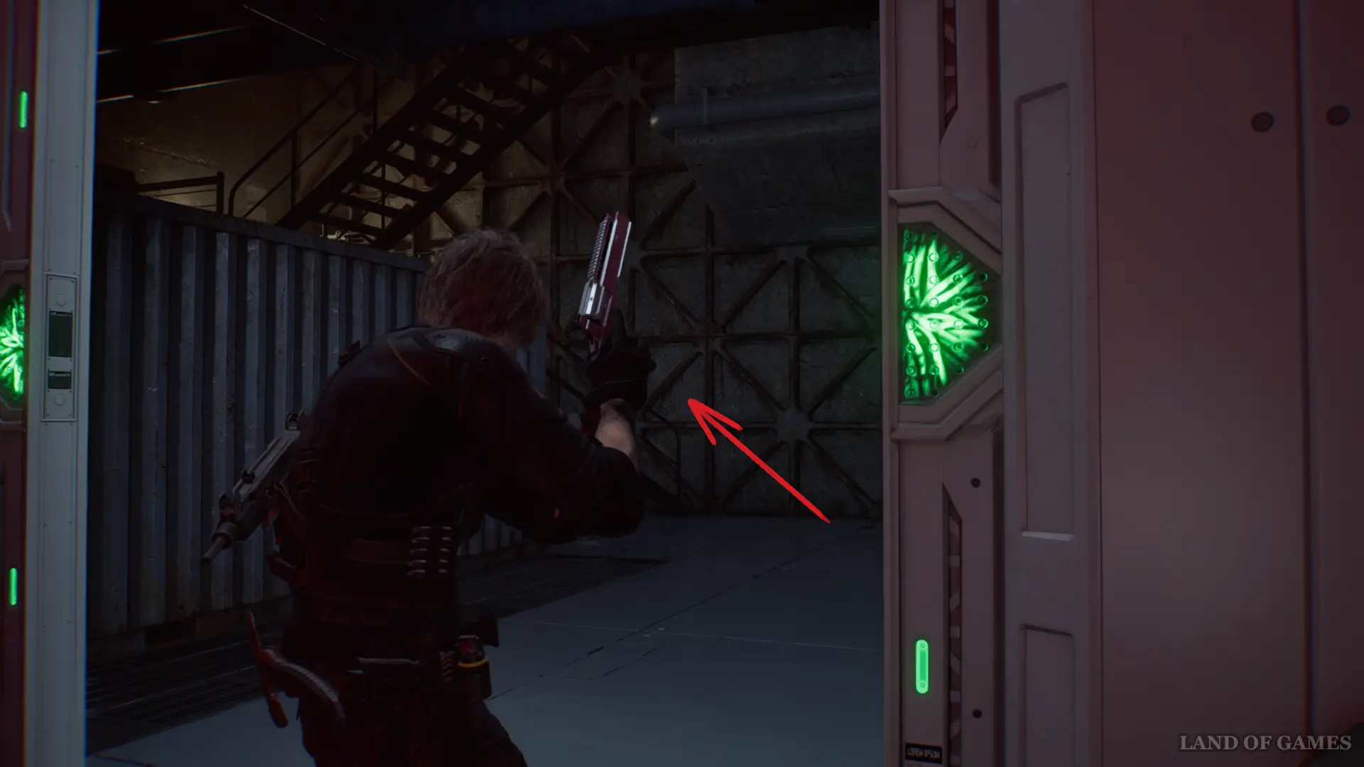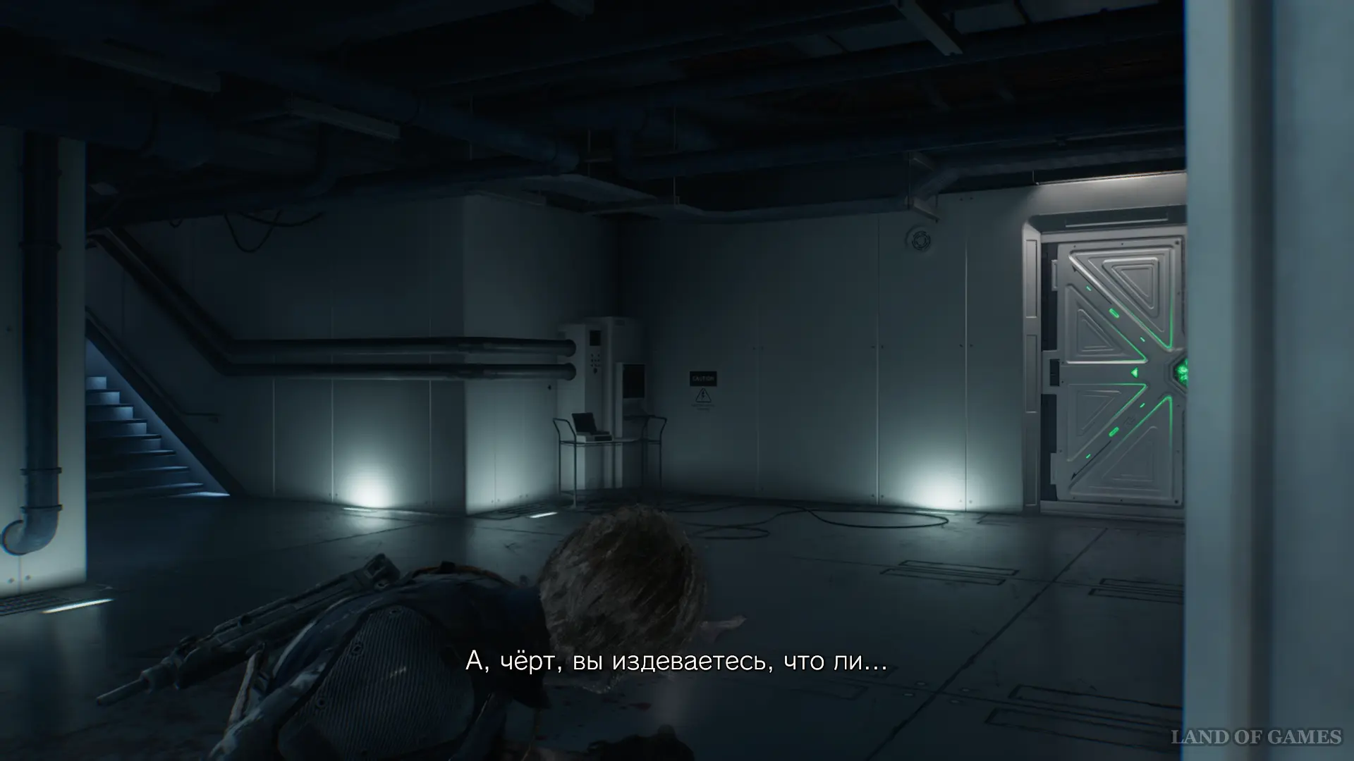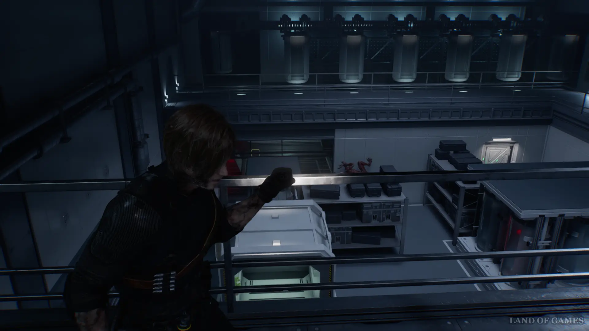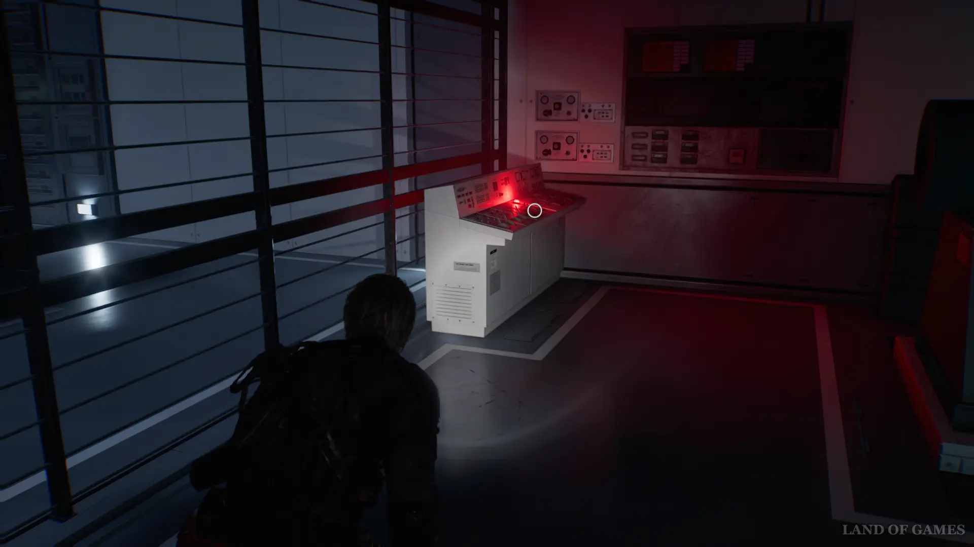 Далее в этом же помещении спрыгните вниз и найдите приборную панель между контейнерами. Нажмите красную кнопку и отправляйтесь в западную часть склада, чтобы проникнуть в Генераторную.