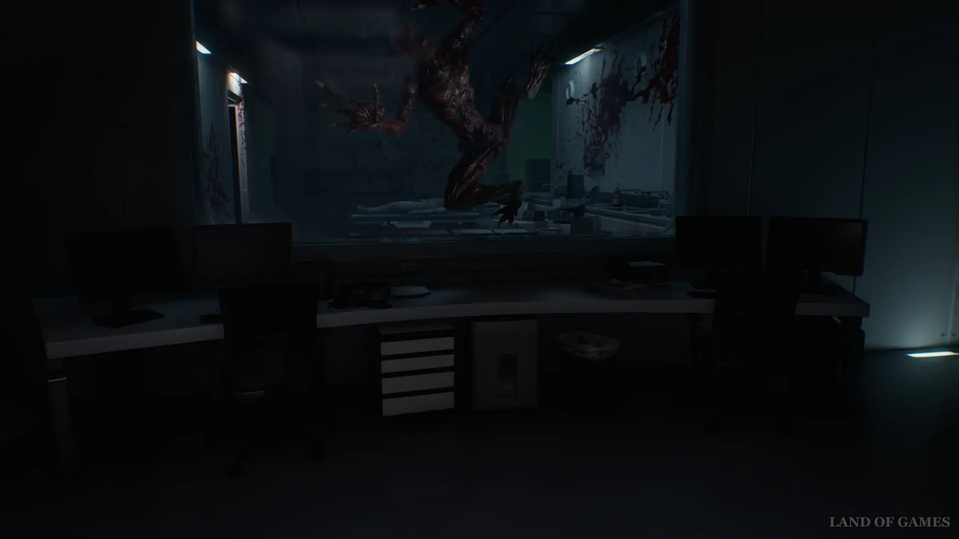 Продолжайте движение по основному пути, пока не окажетесь в следующем кабинете. Здесь вы увидите лизунов, охраняющих территорию.