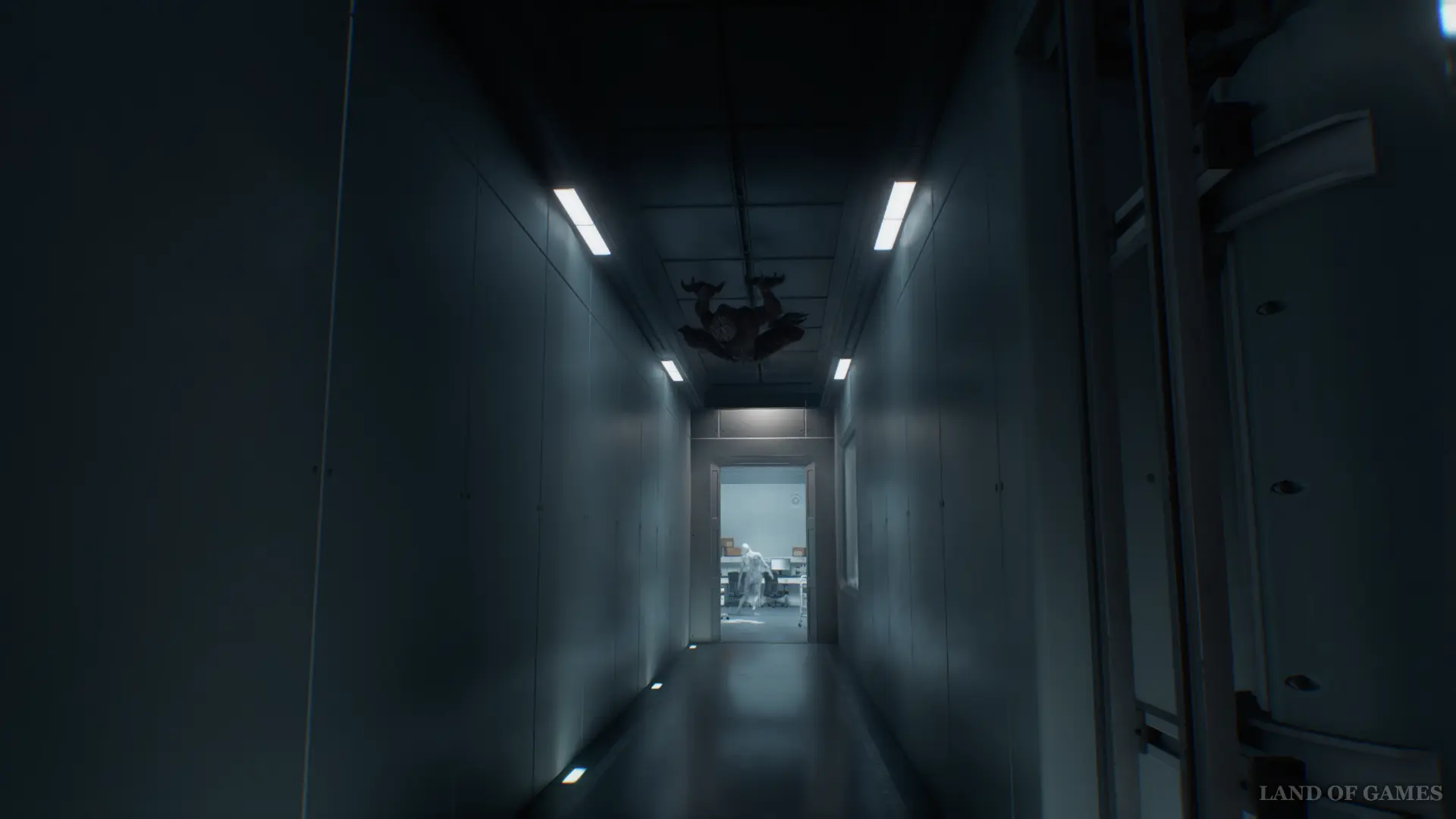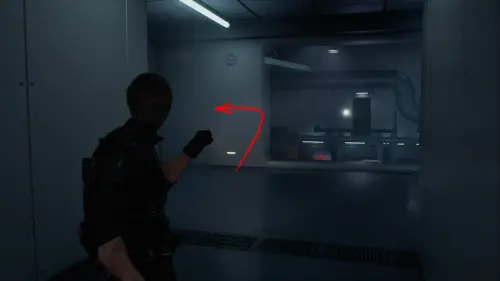 Как только лифт откроется, зайдите внутрь и следуйте по коридору, пока не затриггерится сюжетный ролик.