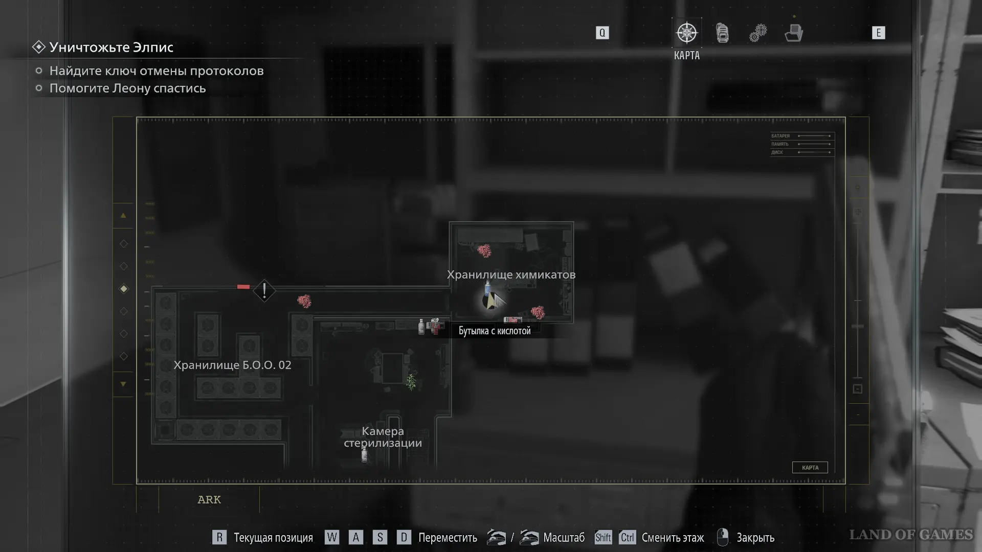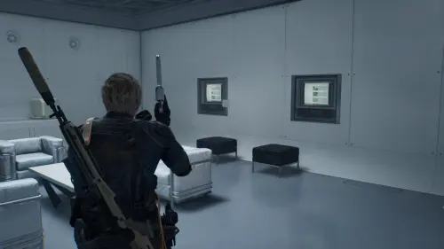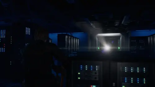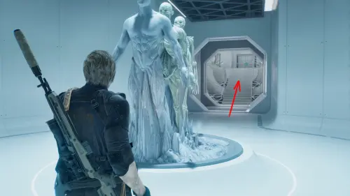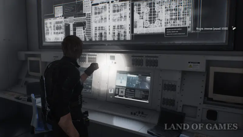 Подойдите к консоли в Зале управления отходами и вставьте Ключ отмены, чтобы помочь Леону выбраться.