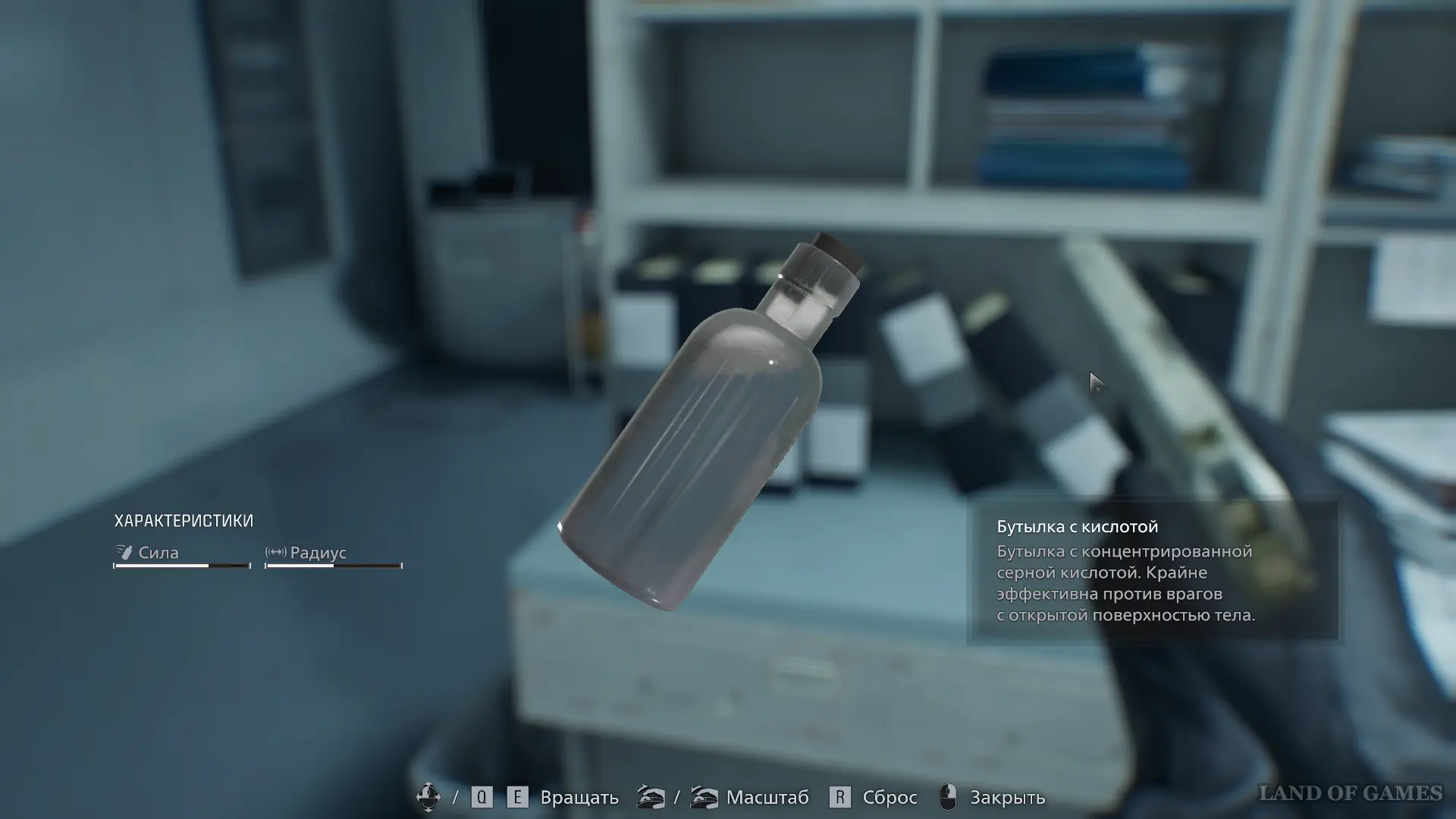 У входа в хранилище вы найдете бутылку с кислотой — крайне эффективным средством против лизунов. Один точный бросок бутылки способен мгновенно уничтожить монстра на любой сложности игры.
