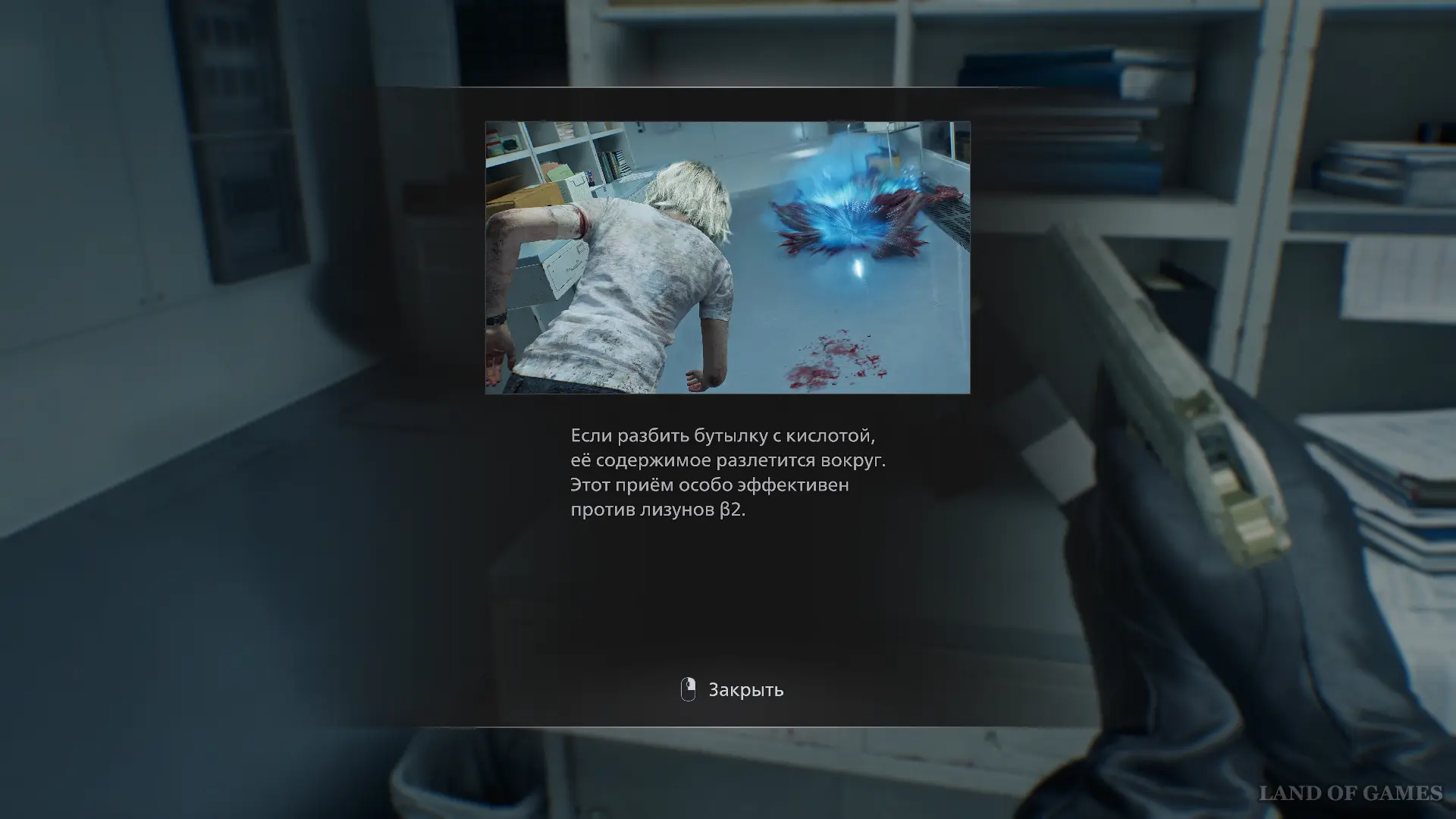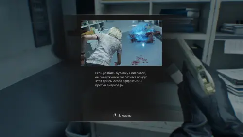 В этот момент два лизуна ворвутся в помещение через окно. Бросьте бутылку кислоты в первого — это убьет его, а заодно привлечет второго и нанесет ему урон. Вам останется лишь расправиться с оставшимся несколькими точными выстрелами.
