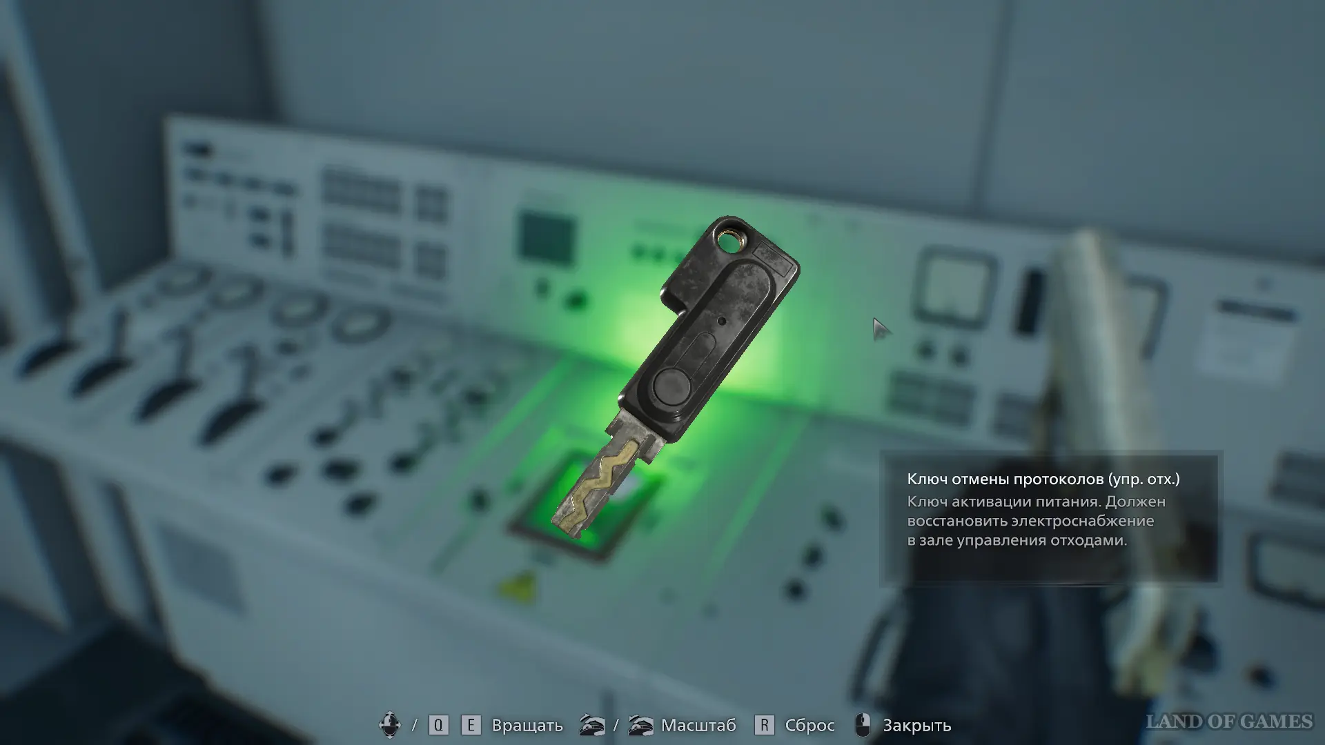 Осмотрите хранилище и устраните двух зомби. В дальнем конце кабинета в приборной панели вы найдете искомый предмет — Ключ отмены протоколов.