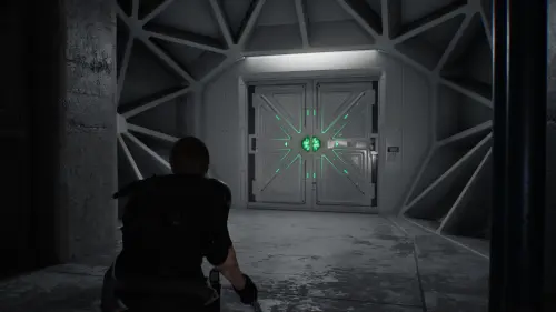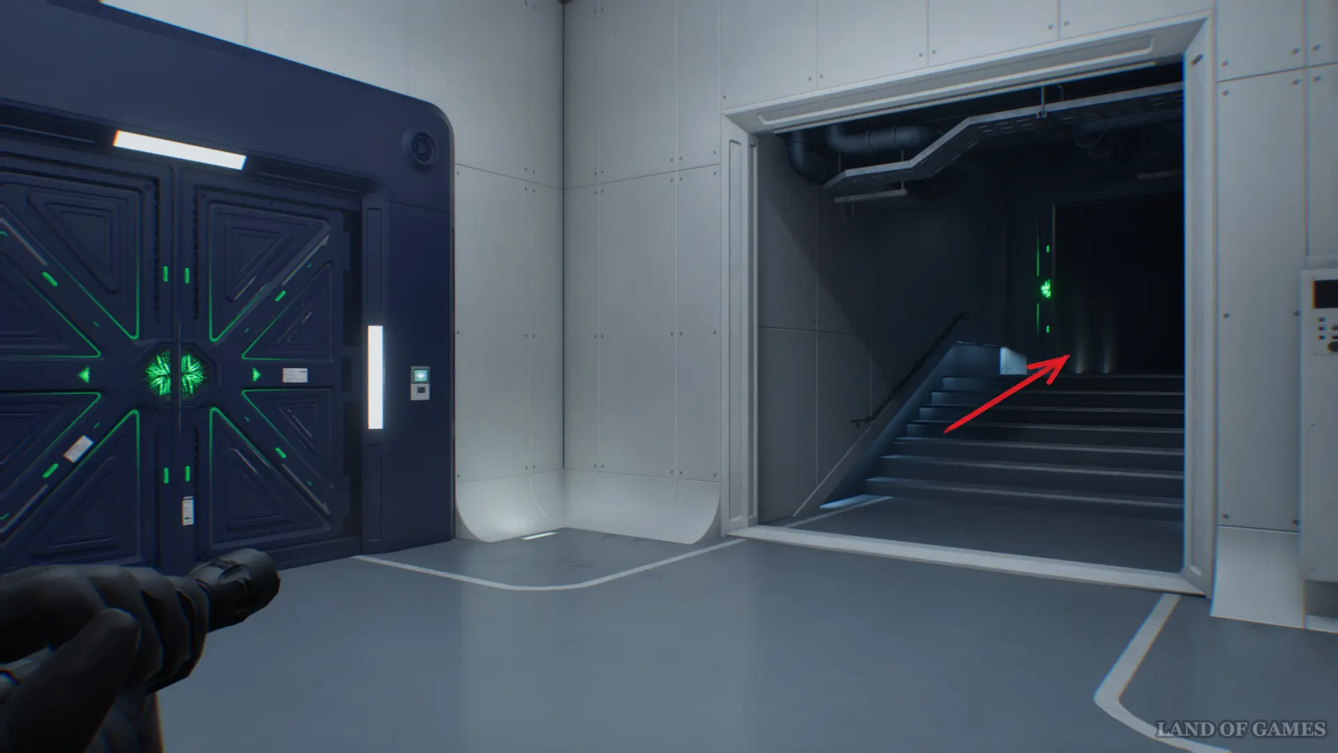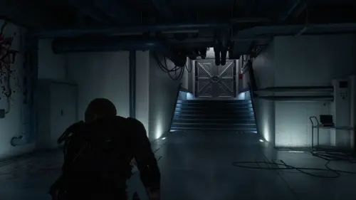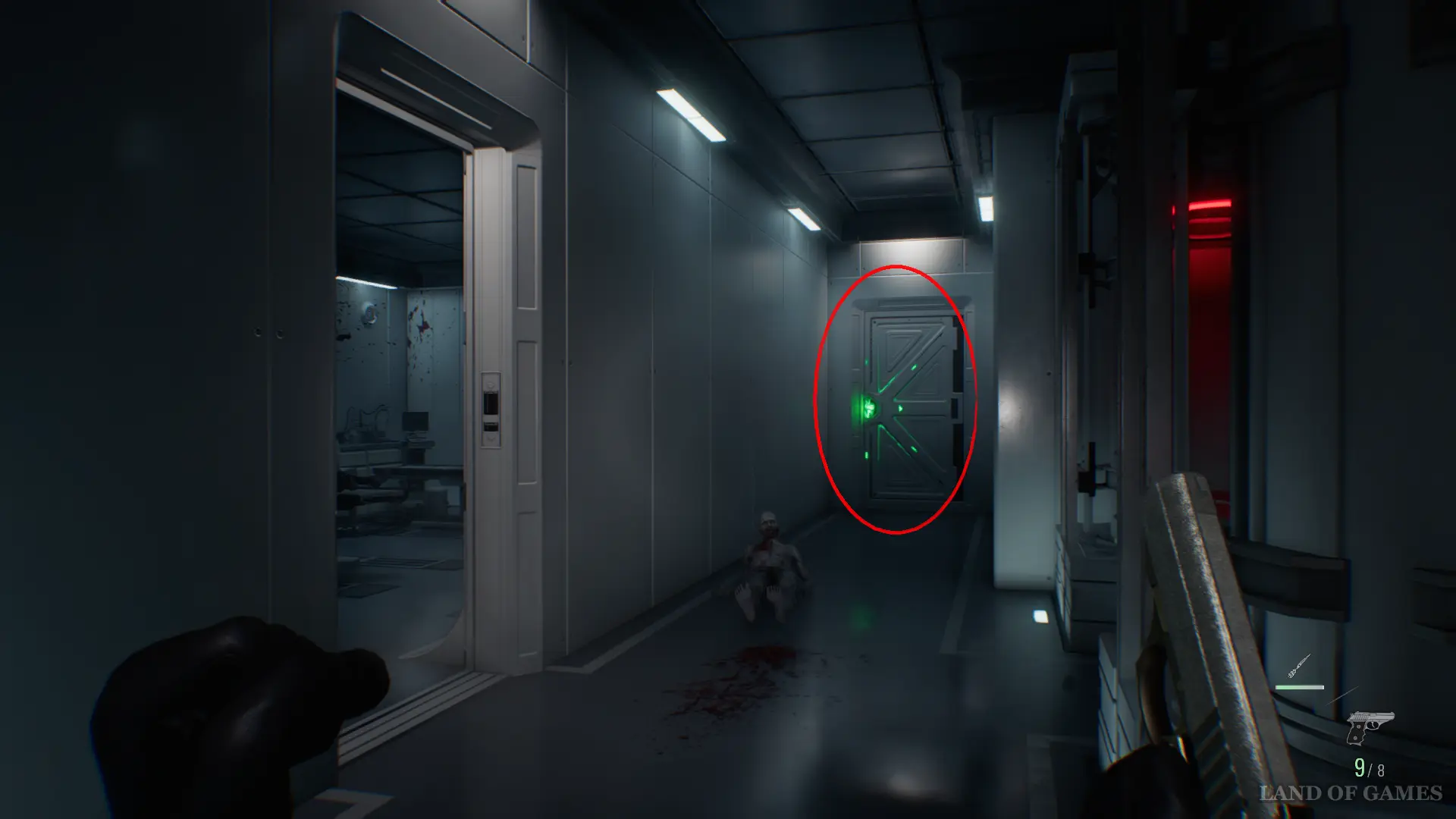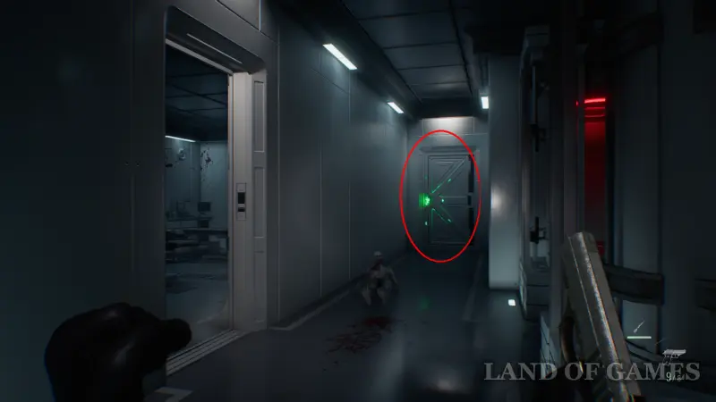 После того как ключ окажется в вашем инвентаре, возвращайтесь в стартовую локацию, стараясь не попасться на глаза новым противникам. Чтобы сократить путь и обойти лабораторную зону, сверните в зеленую дверь в конце коридора.